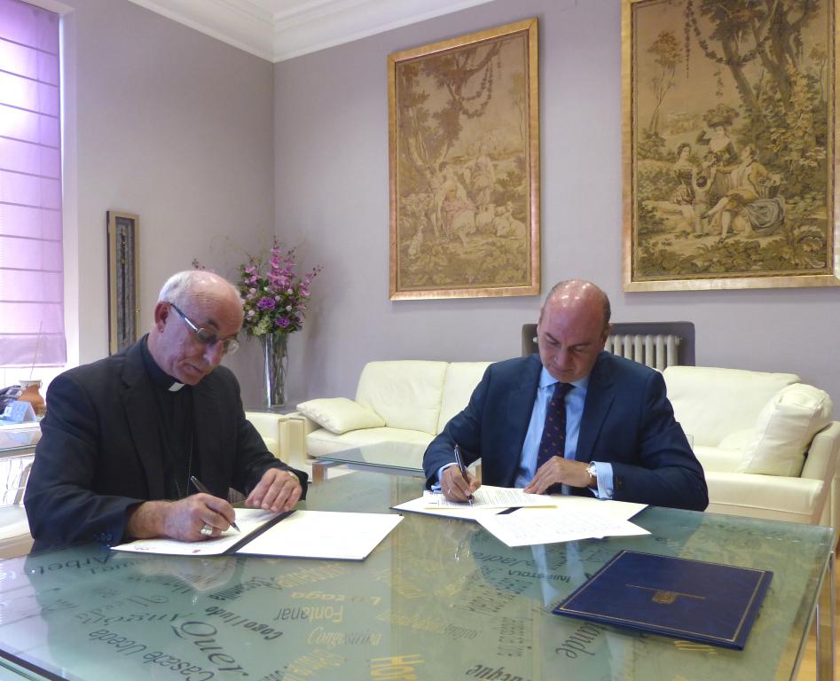 El presidente de la Institución Provincial, José Manuel Latre, ha firmado un convenio de colaboración con el obispo de la Diócesis para la mejora de este Santuario