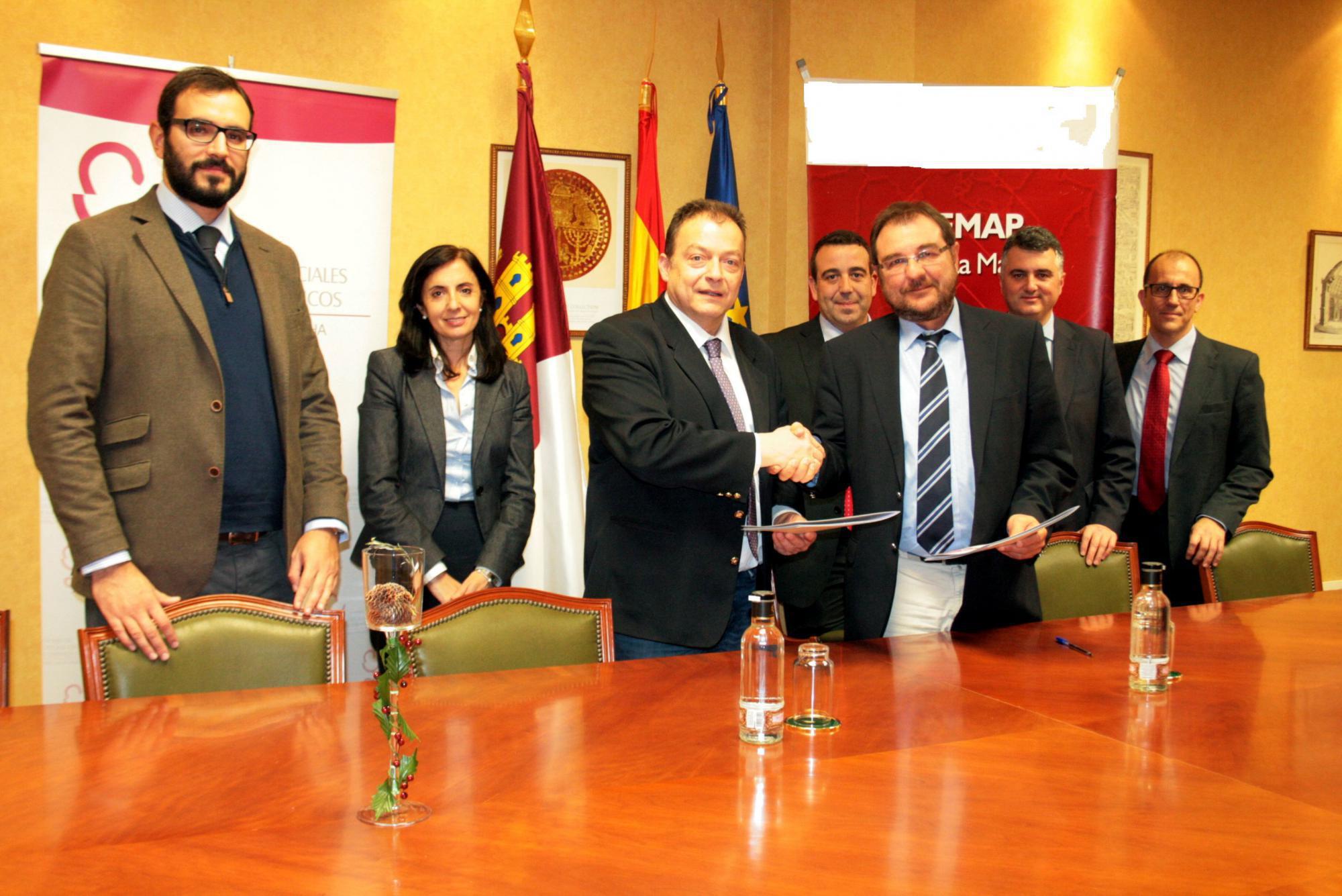 El presidente de los colegiados castellano-manchegos, Ignacio Romeo, y el director regional de FREMAP, Santiago Albillos, han suscrito el acuerdo