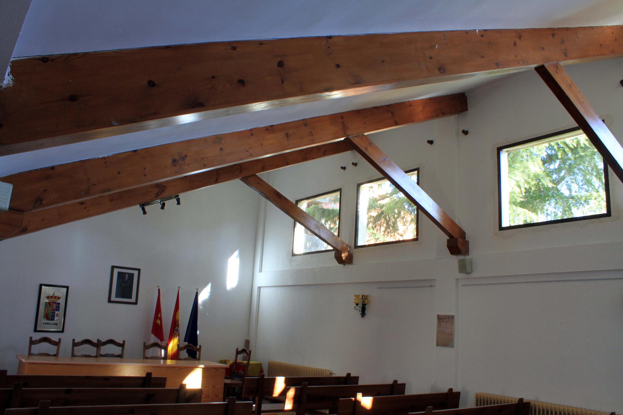 El Ayuntamiento de Tamajón ha promovido la renovación de la carpintería interior y exterior de la Casa Consistorial para mejorar, con los nuevos acristalamientos y materiales, la eficiencia energética del edificio y, consecuentemente, ahorrar en la factura de la calefacción. Precisamente ese sistema, el de la calefacción, también ha sido renovado con la completa sustitución de tuberías y caldera, que tenían una antigüedad de más de 35 años.