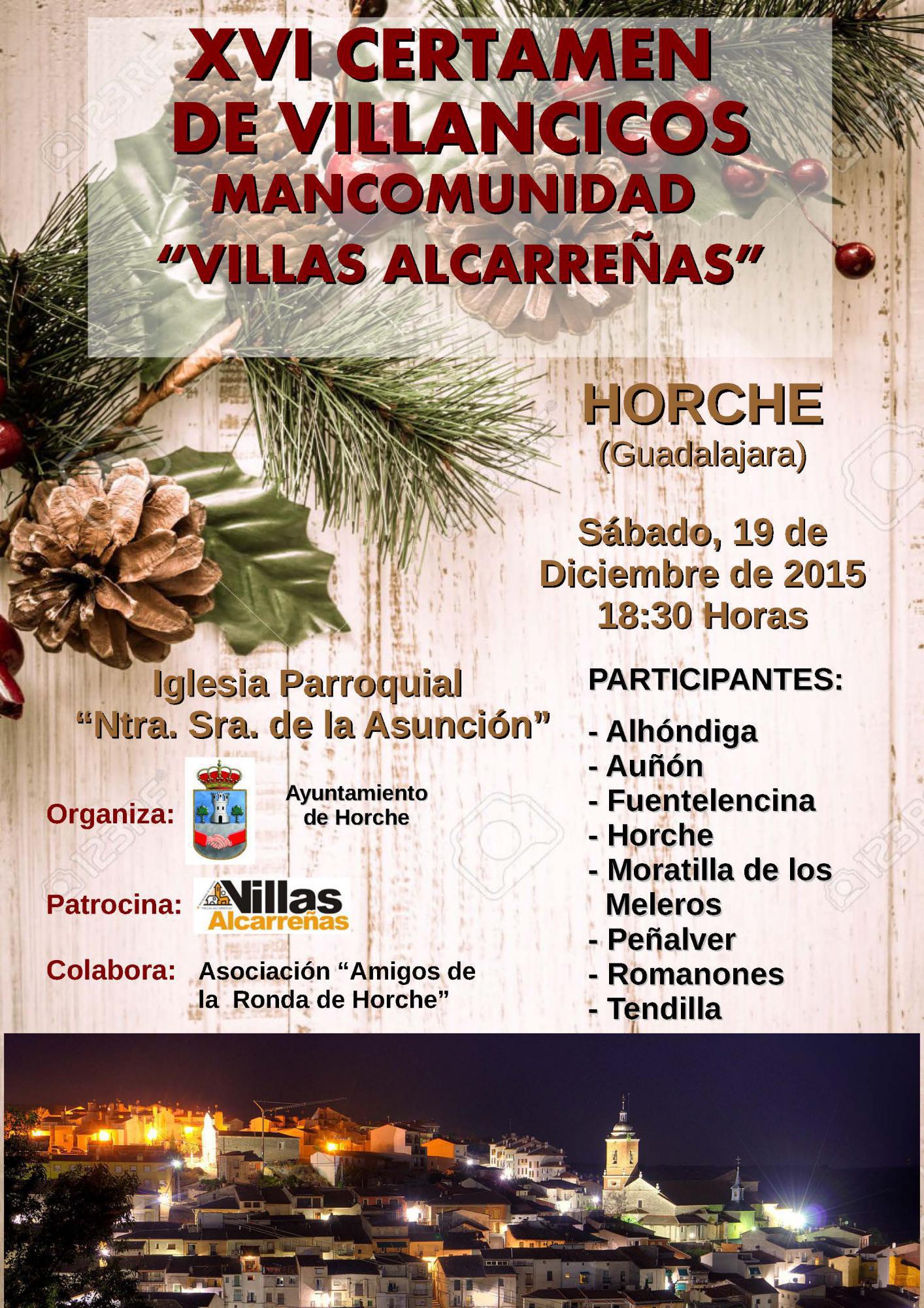 La Iglesia parroquial de Horche “Nuestra Señora de la Asunción” será el escenario en el que se desarrolle la XVIª edición del Certamen de Villancicos Mancomunidad “Villas Alcarreñas”. Este encuentro tiene un carácter anual y es rotatorio, por lo tanto desde el año 2007 no se había celebrado en Horche. El encuentro de música tradicional tendrá lugar el sábado 19 de diciembre a partir de las 18,30 horas y en él participaran grupos musicales de las localidades de Alhóndiga, Auñón, Fuentelencina, Moratilla de los Meleros, Peñalver, Romanones, Tendilla y la anfitriona, Horche.
