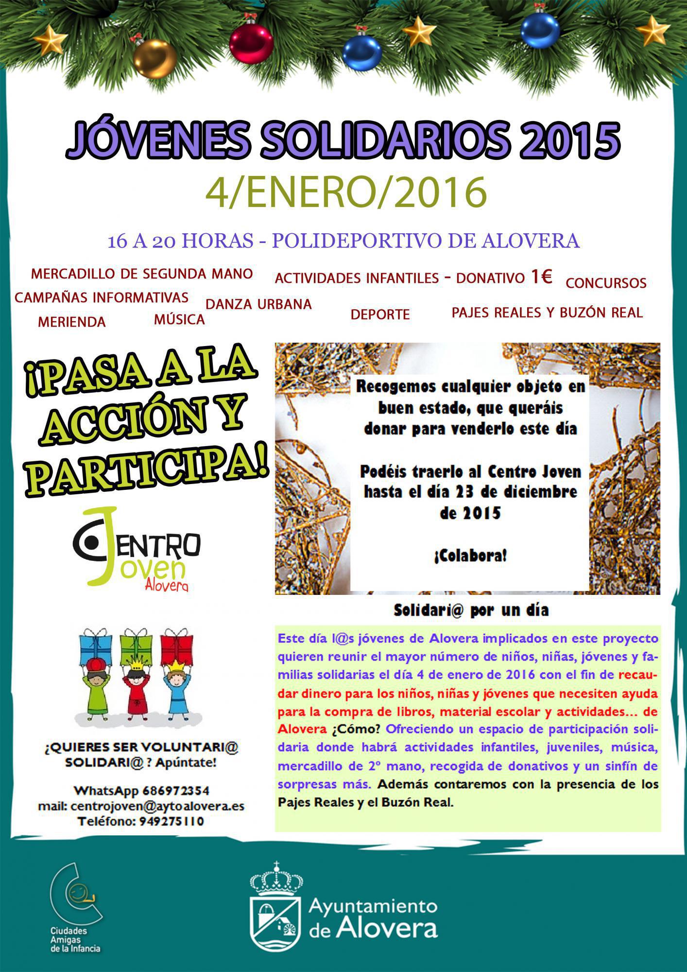 Los jóvenes de Alovera no son indiferentes a los problemas de la sociedad y las dificultades económicas por las que pasan muchas familias. Concienciados con la necesidad de ayudarlos, un grupo de jóvenes usuarios del Centro Joven de la localidad han puesto en marcha el evento ‘Jóvenes Solidarios’, con el objetivo de ayudar a las familias más necesitadas. La cita tendrá lugar el próximo 4 de enero en el polideportivo La Dehesa.
