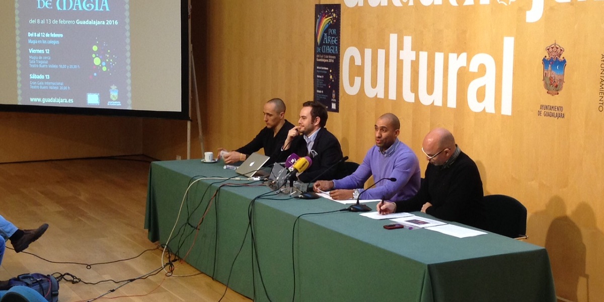 El festival “Por arte de magia” volverá a celebrarse un año más en Guadalajara los días 12 y 13 de febrero. Esta mañana ha sido presentado por el teniente de alcalde y concejal de Cultura, Armengol Engonga, junto al director del teatro Buero Vallejo, Julio Gómez, el director del festival e ilusionista, Jorge Blas, y uno de los magos que participarán en esta novena edición, Héctor Mancha.