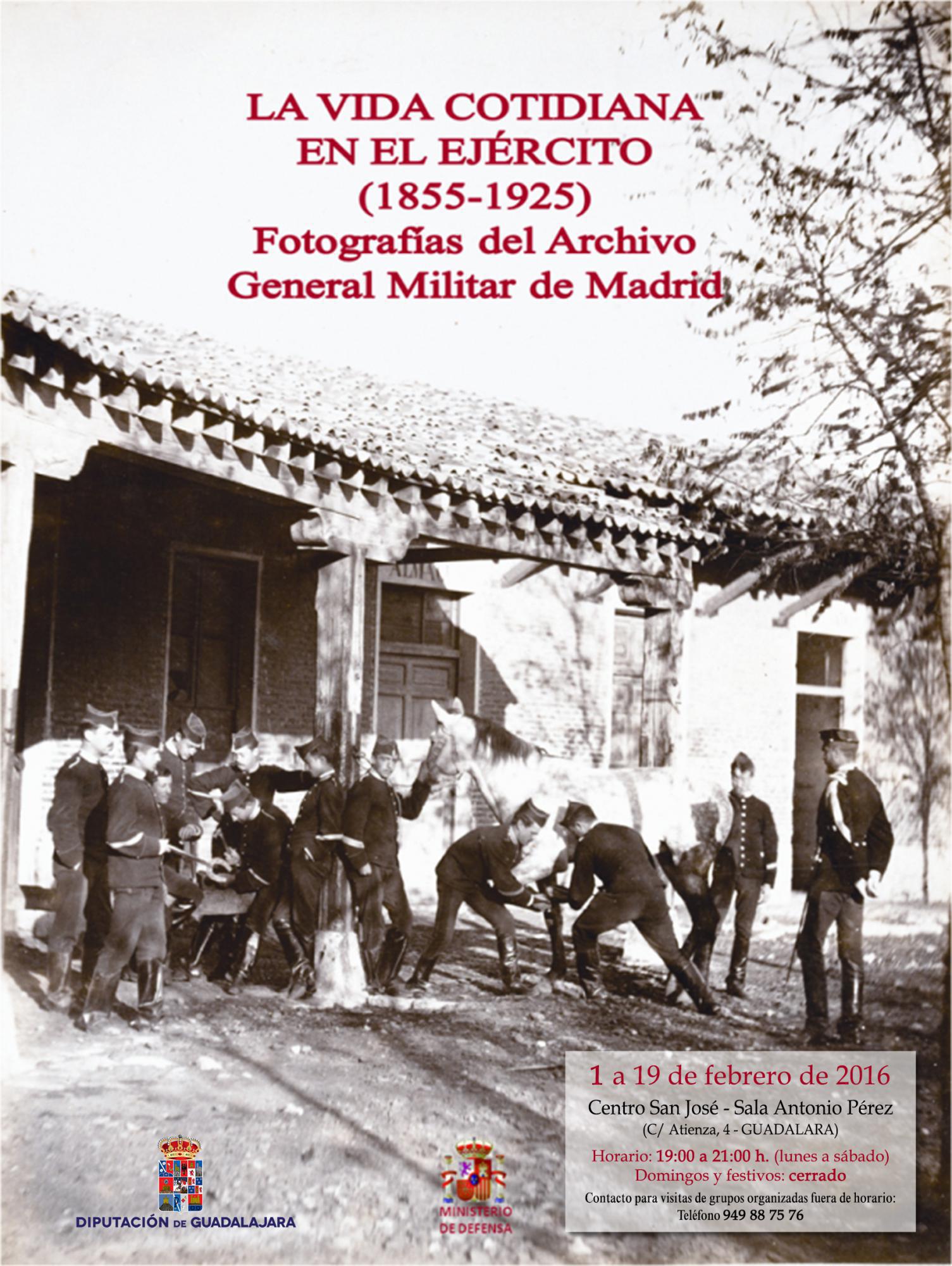 El próximo lunes, 1 de febrero, a partir de las 18:00 horas se inaugura en la Sala de Arte "Antonio Pérez" de la Diputación de Guadalajara (planta baja edificio San José de nuestra capital) la exposición "La vida cotidiana en el Ejército (1855-1925)", compuesta por una selección de fotografías de la colección del Archivo General Militar de Madrid.