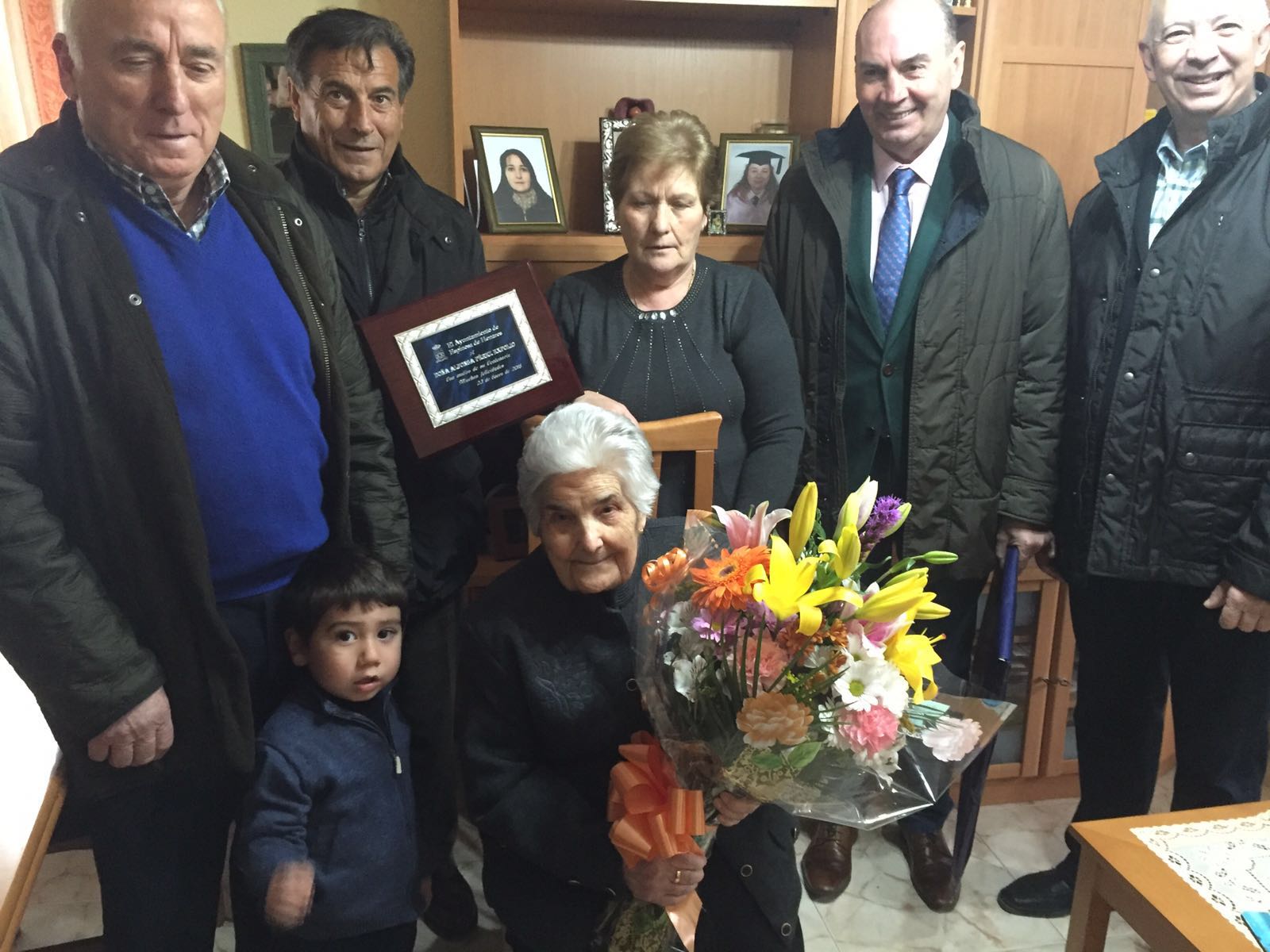 José Manuel Latre ha entregado a la centenaria una reproducción de su acta de nacimiento enmarcada en su casa de Espinosa de Henares