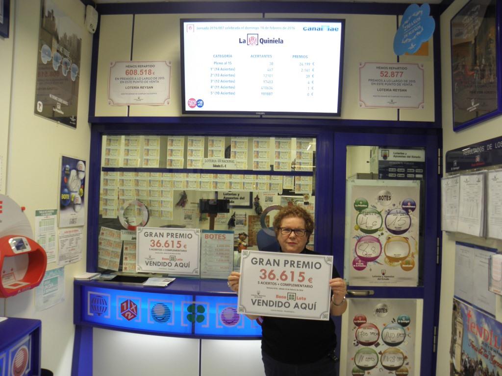 El premio resultante son 36.615,43 euros al tener acertados los cinco números de la combinación y el número complementario.