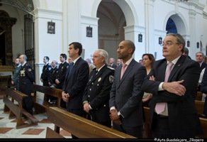 El alcalde de Guadalajara, Antonio Román, ha asistido hoy a los actos centrales de la Festividad de Los Ángeles Custodios, patrones de la Policía Local. El alcalde de Guadalajara acudió a primera hora de la mañana a una misa que se celebró en el Santuario de Nuestra Señora de la Antigua y, posteriormente, a un vino español ofrecido en el Teatro Buero Vallejo. En el acto religioso el alcalde estuvo acompañado por el Jefe de la Policía Local, Julio Establés, así como por varios mandos del cuerpo y el concejal de Seguridad Ciudadana, Armengol Engonga. También asistieron a la Celebración Eucarística el Comisario de Policía, Rafael González Cachinero y el Comandante de la Guardia Civil, José Luis Díaz. Junto a ellos estuvieron los tenientes de alcalde Juan Antonio de las Heras, Encarnación Jiménez y Carmen Heredia, así como los concejales Isabel Nogueroles, Verónica Renales, Alfonso Esteban, Eladio Freijo y Lorenzo Robisco. A la misa asistieron también numerosos familiares y amigos de los agentes de la policía local. SIGUE
