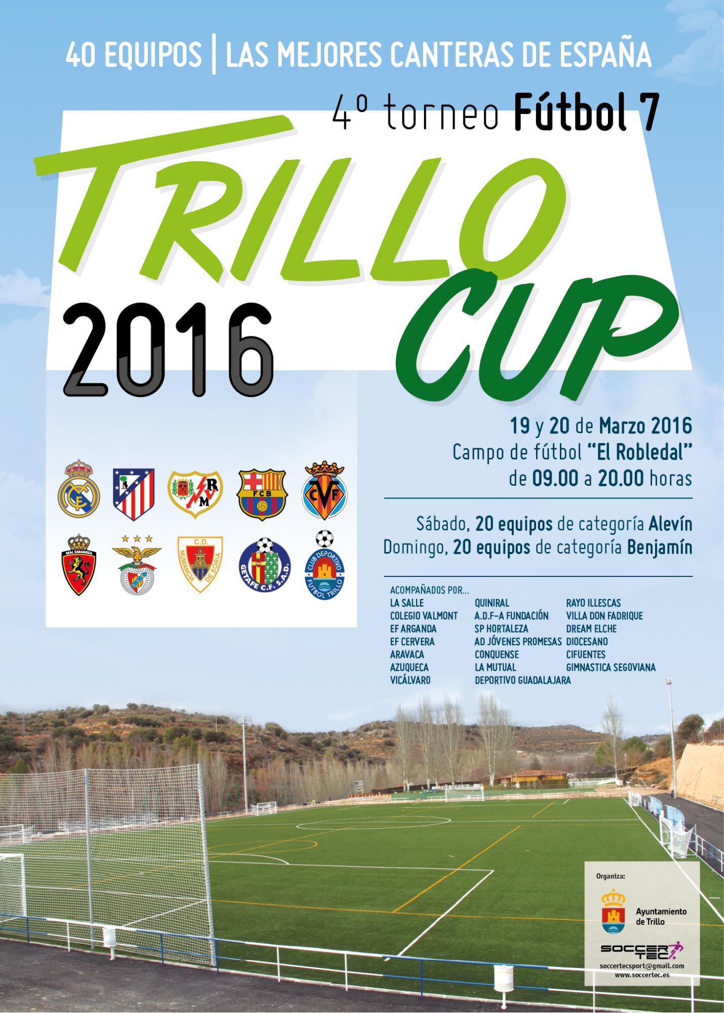 Más de quinientos chavales pertenecientes a cuarenta equipos, veinte en categoría benjamín y otros tantos en categoría alevín, van a llenar del mejor fútbol el fin de semana previo a la Semana Santa de Trillo en la IV Edición de la Trillo Cup (19-20 de marzo).