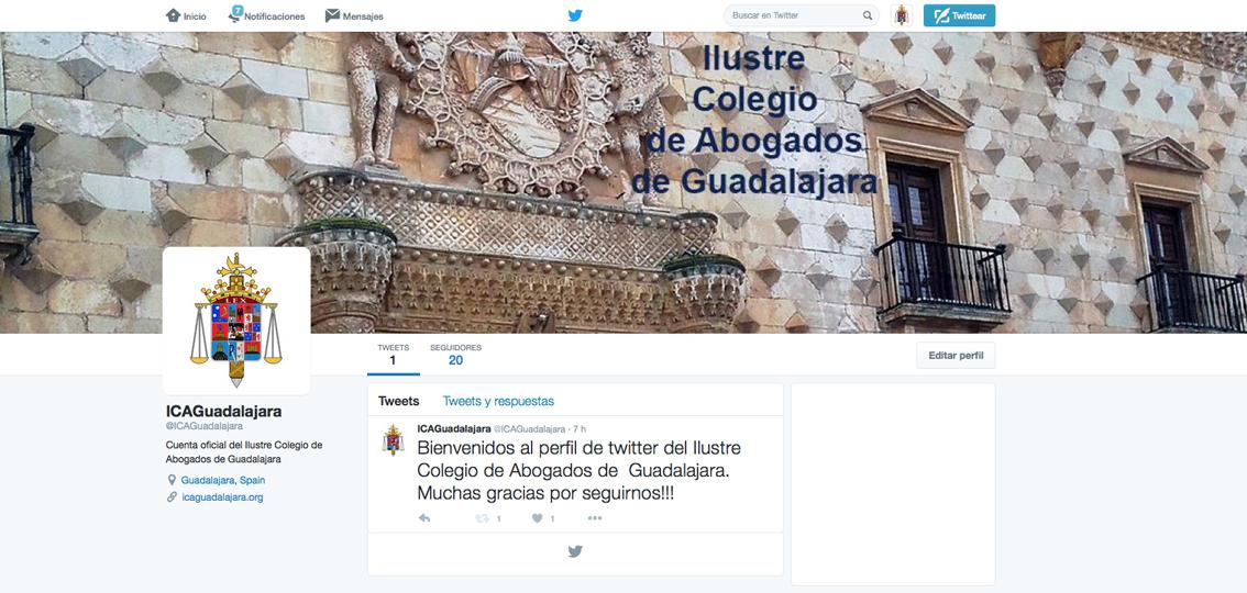 El Ilustre Colegio de Abogados de Guadalajara ha puesto en marcha, desde ayer 21 de marzo, perfiles en las redes sociales Facebook (Facebook.com/icaguadalajara) y Twitter (twitter.com/ICAGuadalajara).