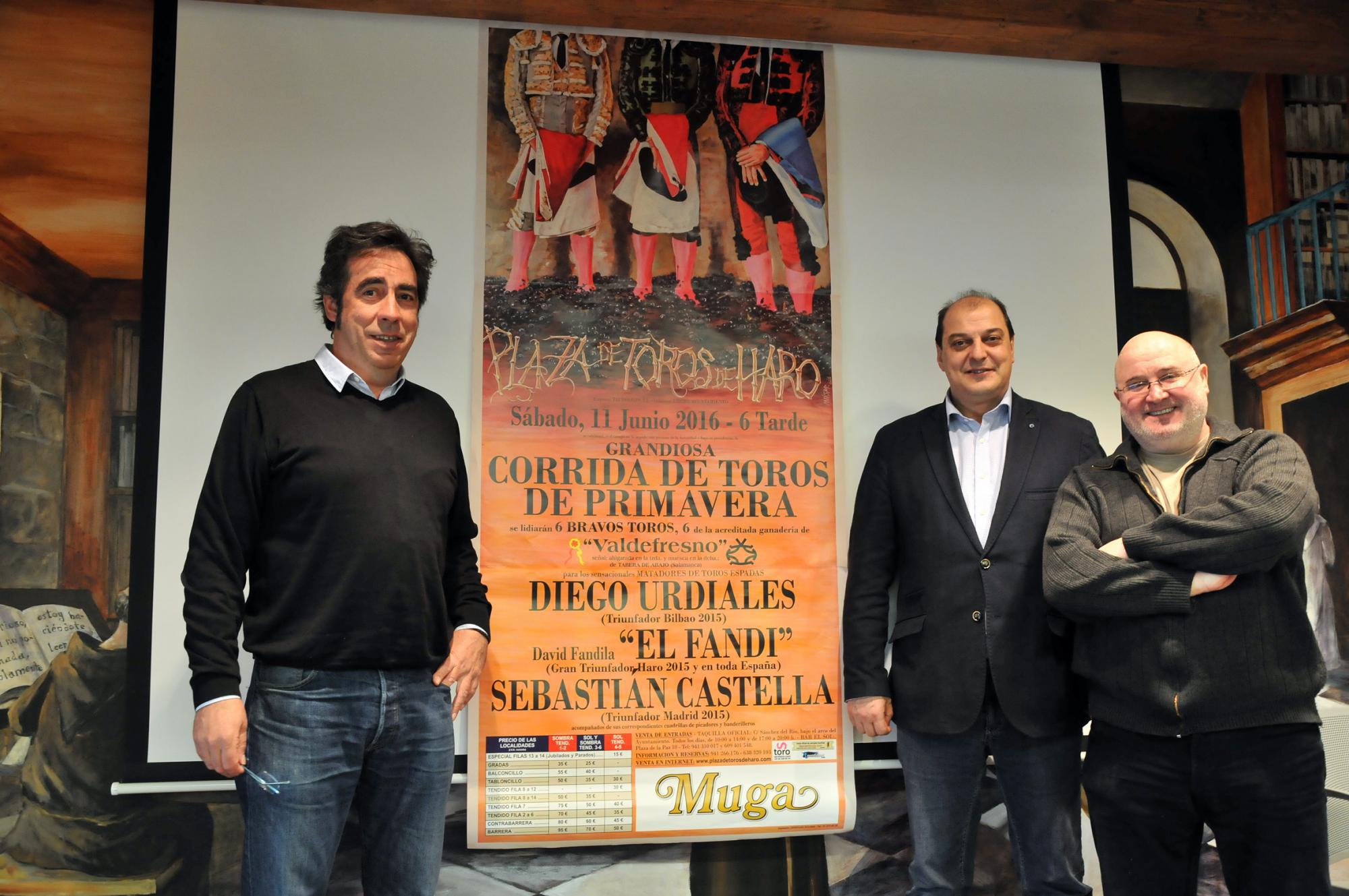 El cartel ha despertado un gran interés entre la afición taurina pues en él se ha reunido al torero riojano Diego Urdiales, triunfador de las Corridas Generales de Bilbao del 2015, plaza en la que realizó una histórica faena, siendo quizá el torero más seguido por la afición por su extraordinario concepto de la pureza y el sentimiento que muestra su toreo. Junto a él actuará el número uno del escalafón 2015, David Fandila “EL FANDI”, garantía de espectáculo en todas sus actuaciones, y para rematar el cartel el gran triunfador de San Isidro 2015 y autor de la mejor faena en la Plaza de Las Ventas, Sebastián Castella.