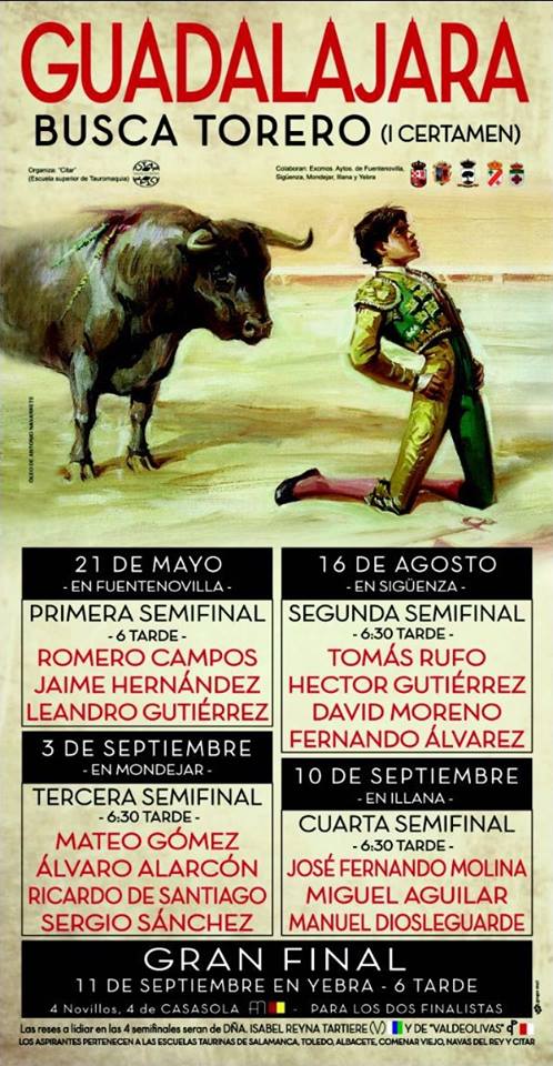 - Final: Yebra. 11 de septiembre. Novillada sin picadores con 4 erales para los dos finalistas.
