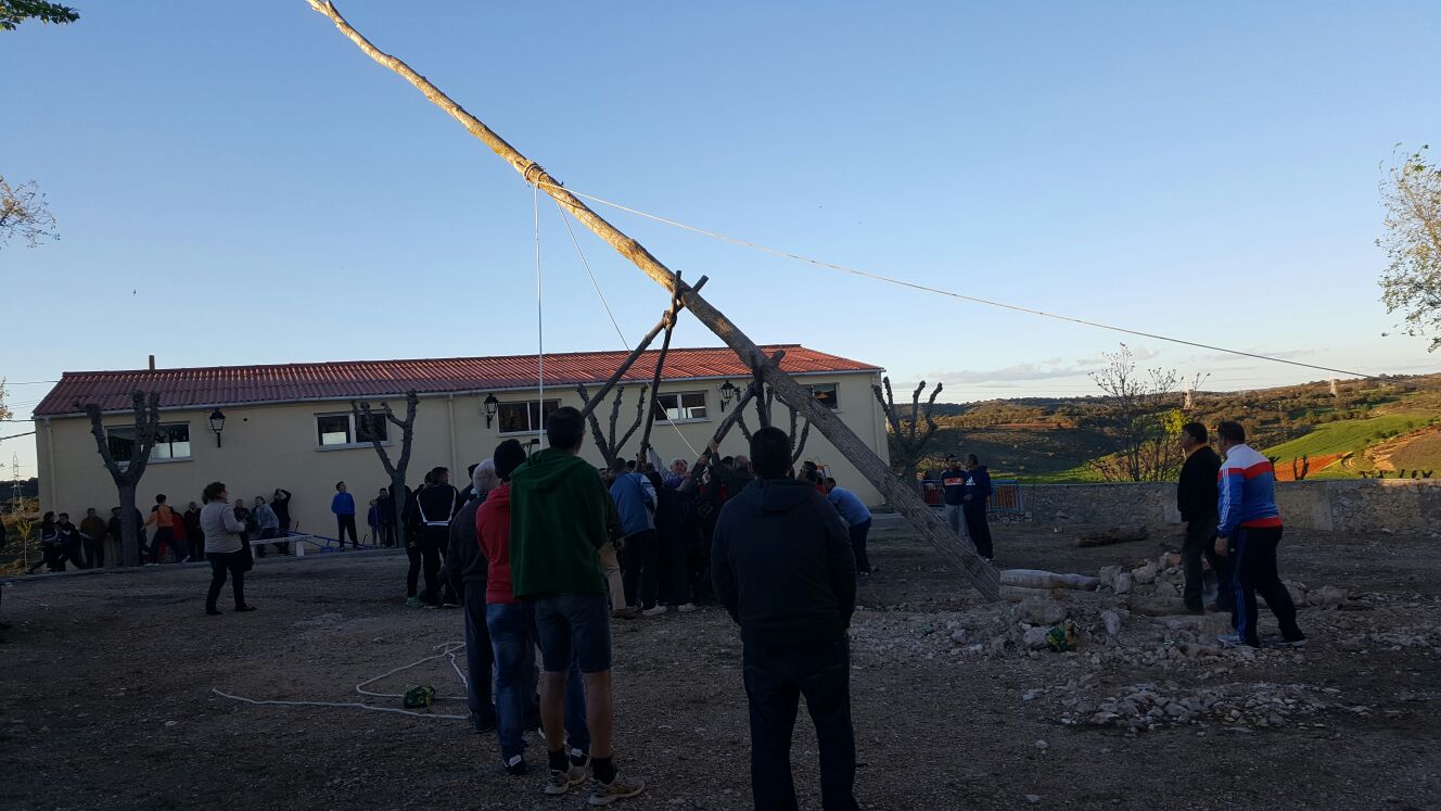 Con un maestro de ceremonias que iba indicando a los mozos lo que había que hacer en cada momento, ya fuera tirar de las cuerdas de un lado o del otro, ya fuera insertar las cabrillas y recorrerlas cada vez más cerca de la base, el palo, por fin, miro cara a cara a la torre de la Iglesia, distante sólo unos metros del lugar en el que se planta.