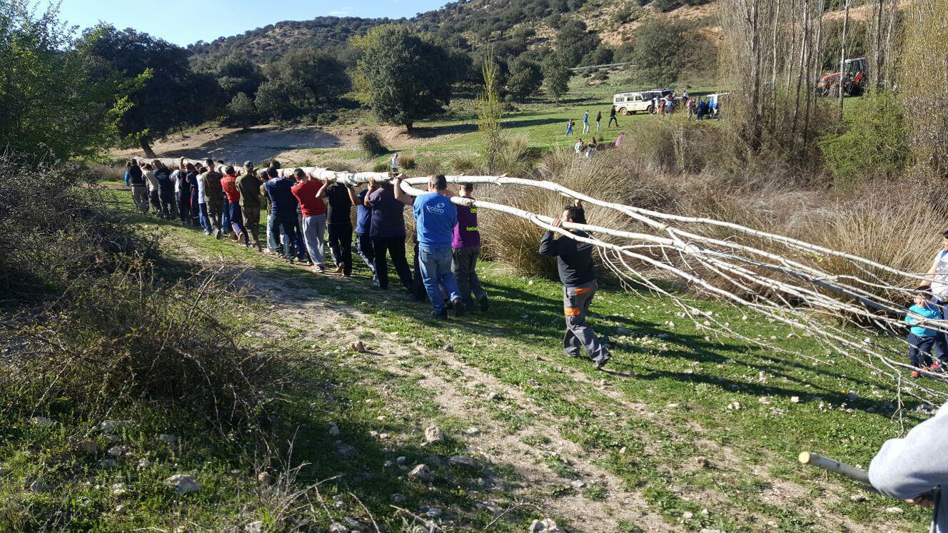 A partir de las seis de la tarde del día 30 de abril, mozos, y no tan mozos, encabezados por los quintos del año, es decir, quienes llegan a su mayoría de edad en 2016 que este año fueron tres y chicos y una chica, bajaron a la chopera del paraje conocido como el 'Huerto del tío Jesús'.