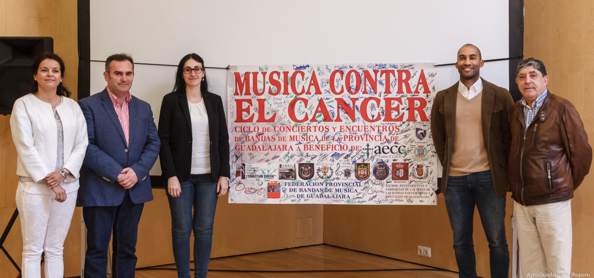 Hoy ha sido presentado por el teniente de alcalde y concejal de Cultura, Armengol Engonga, José Mª Jiménez Bustos, presidente de la AECC en Guadalajara, Jesús del Melado García, presidente de Feproban, Elisa Gómez Pérez, directora Banda de Música de Sigüenza y Raquel Sánchez Pardo, directora Banda de Música de Brihuega.