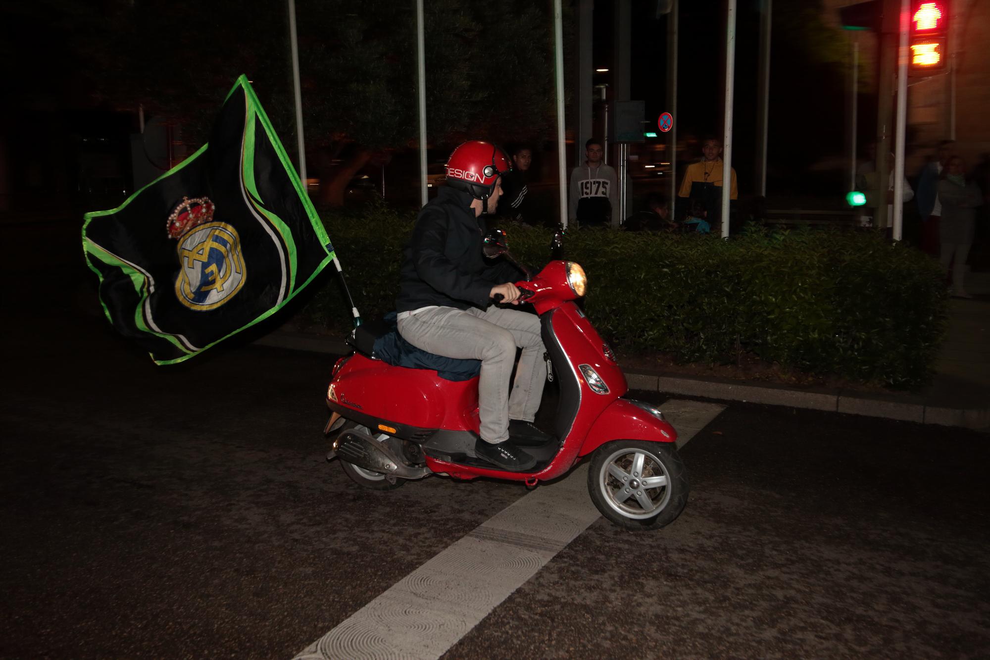 | Un aficionado madridista celebrando el sábado por la noche en la Plaza Santo Domingo de Guadalajara la undécima Copa de Europa conseguida por el Real Madrid (Foto: www.eduardobonillaruiz.com) |