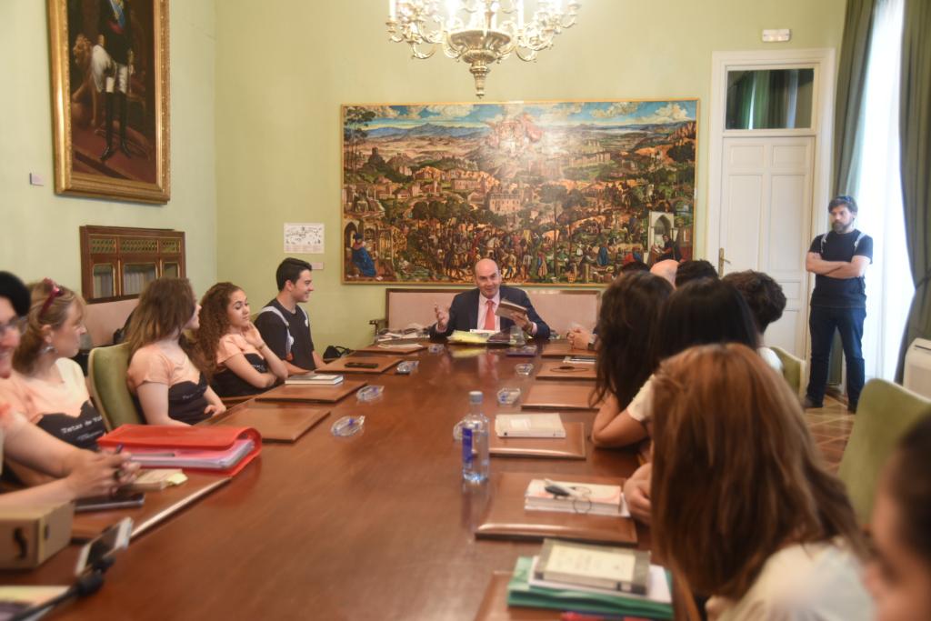 Esta mañana se han reunido con el presidente de la Diputación, José Manuel Latre, el vicerrector de la Universidad de Alcalá en el Campus de Guadalajara, Carmelo García, y las viajeras de ‘Arte en marcha’ para cerrar los últimos detalles de este Curso-Viaje de verano ‘Journey to the Alcarria’. También han estado presentes los diputados de Turismo y Promoción Económica, Jesús Parra y Alberto Domínguez, respectivamente.