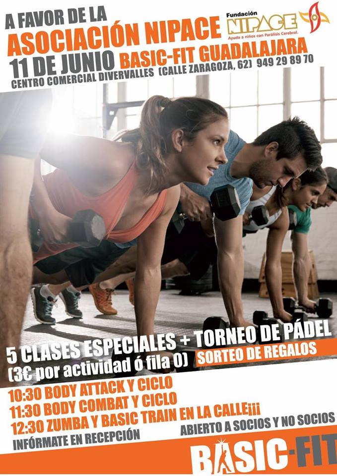 Fundación Nipace y Basic-FIt organizan unas jornadas deportivas solidarias con distintas actividades deportivas como Body Attack, Basic Train, Zumba, Ciclo y Body Combat con el objetivo de que todo lo recaudado este día vaya destinado a los niños con parálisis cerebral de Nipace, con el fin de poder seguir mejorando las instalaciones y el nivel de servicios prestados en NIPACE.