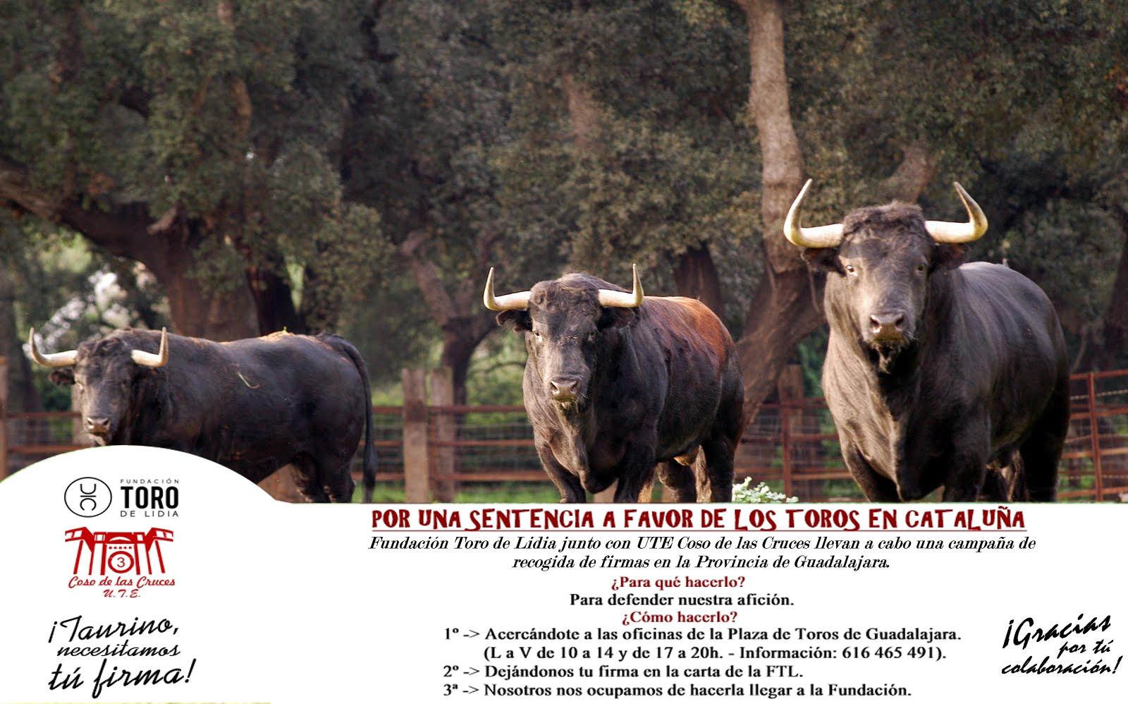 La Fundación Toro de Lidia en sus labores de defensa y promoción de la tauromaquia está planteando una recogida de firmas a nivel nacional con el fin de presentarlas ante el Tribunal Constitucional con el objetivo de que se pronuncie con una sentencia favorable a la prohibición de los toros en Cataluña.