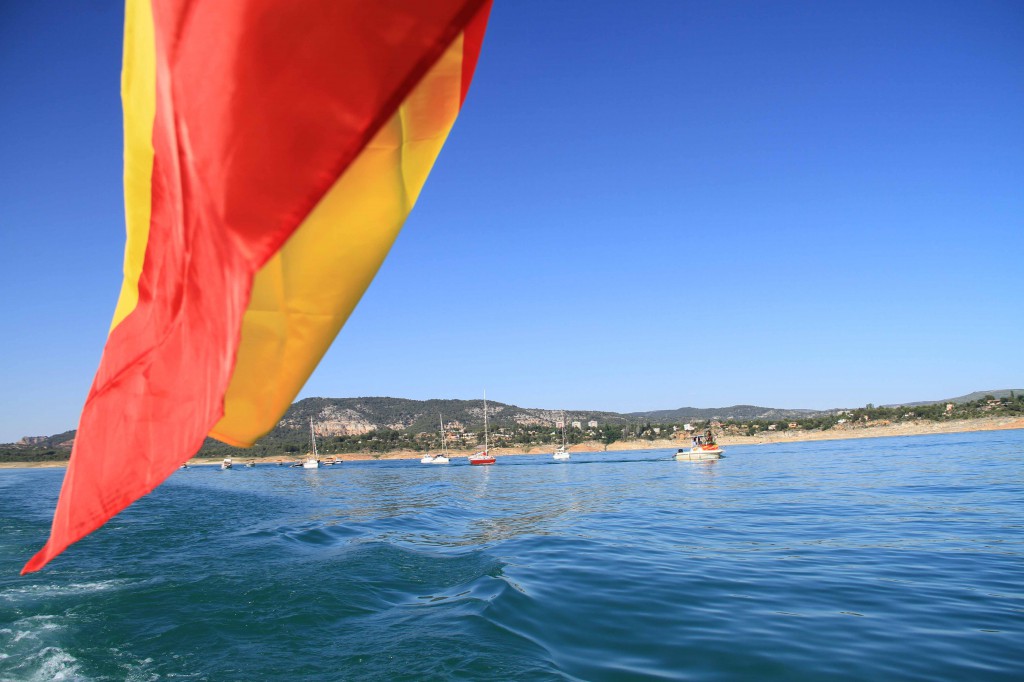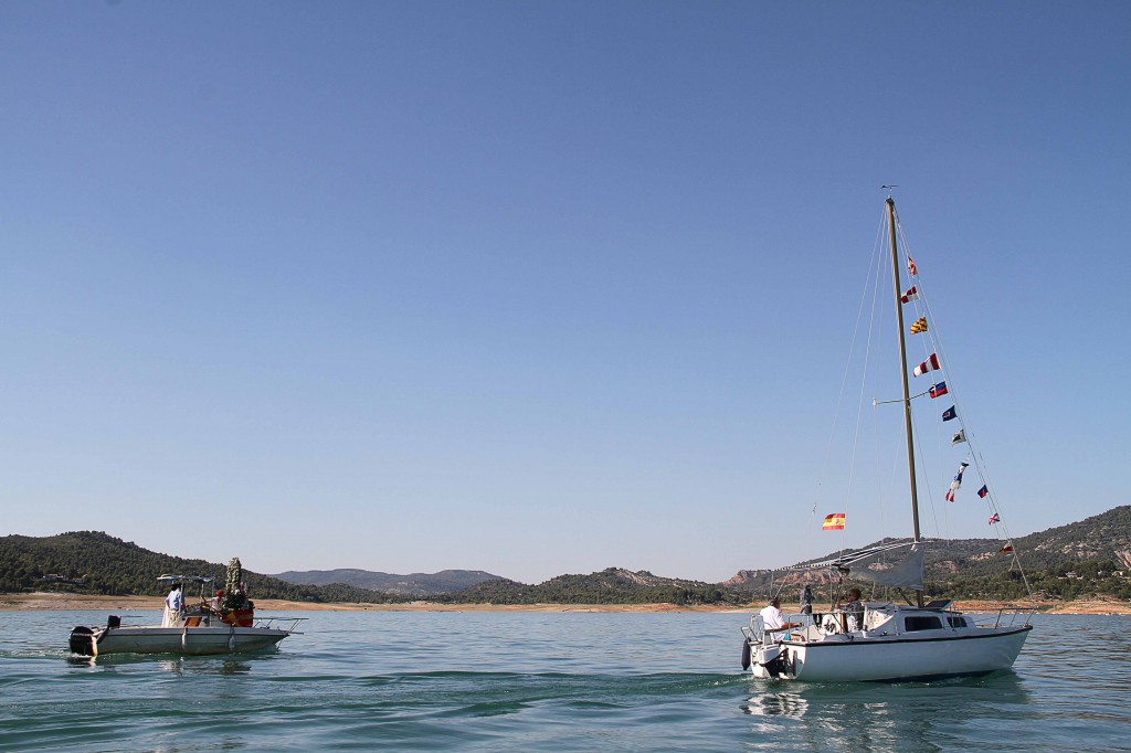 En la procesión, los barcos guardan el orden establecido. Detrás de la Virgen del Camen salieron los veleros, que marcan la velocidad del resto, y detrás, las embarcaciones deportivas, motoras deportivas y las familiares o cabinadas. Los primeros habían adornado sus jarcias y palos con las banderas y señales que se utilizan para comunicarse a distancia en el agua. Fueron 24 las embarcaciones que siguieron la estela que la Señora dejaba sobre el pantano de Entrepeñas.