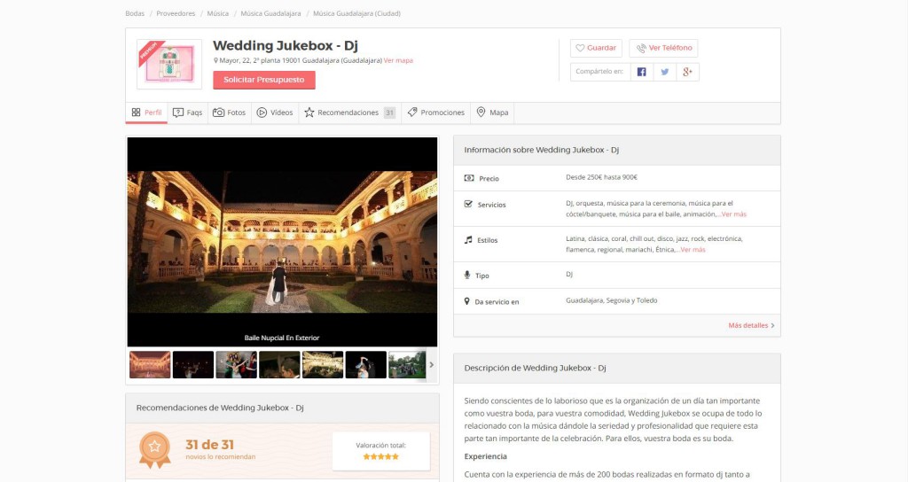 Este reconocimiento no sólo les sitúa como la mejor opción en Guadalajara para ocuparse de la música de bodas según la prestigiosa web, sino que también alcanzar de esta manera los puestos más altos a nivel nacional.