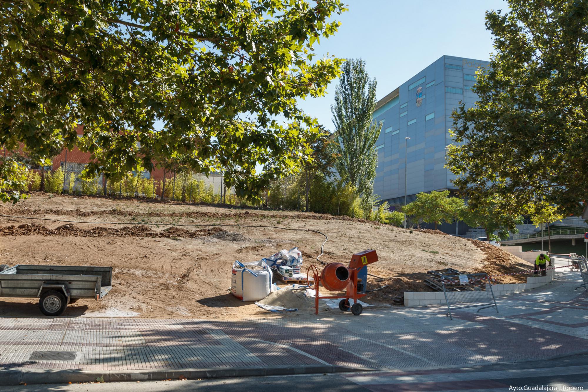 En este punto, la UTE Jardines Guadalajara, adjudicataria del servicio de mantenimiento de parques y jardines, está acondicionando un resto urbano que se convertirá, una vez finalizadas las labores que se están llevando a cabo estos días, en una zona ajardinada dotada de césped, árboles de sombra y flores de temporada.