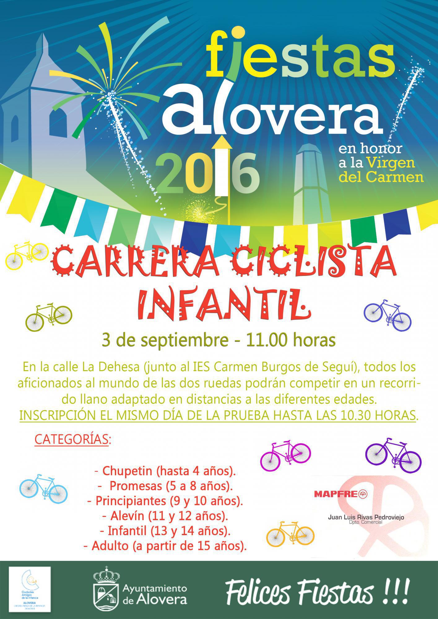 El sábado 3 de septiembre en la calle La Dehesa, el Ayuntamiento en colaboración con la aseguradora Mapfre ha organizado una carrera ciclista infantil con salida e inscripciones gratuitas en la Calle La Dehesa a las 11:00 horas. Las categorías irán desde chupetín (hasta 4 años) a adultos y la inscripción se realizará hasta las 10,30 horas el mismo día de la prueba. Obligatorio casco protector.