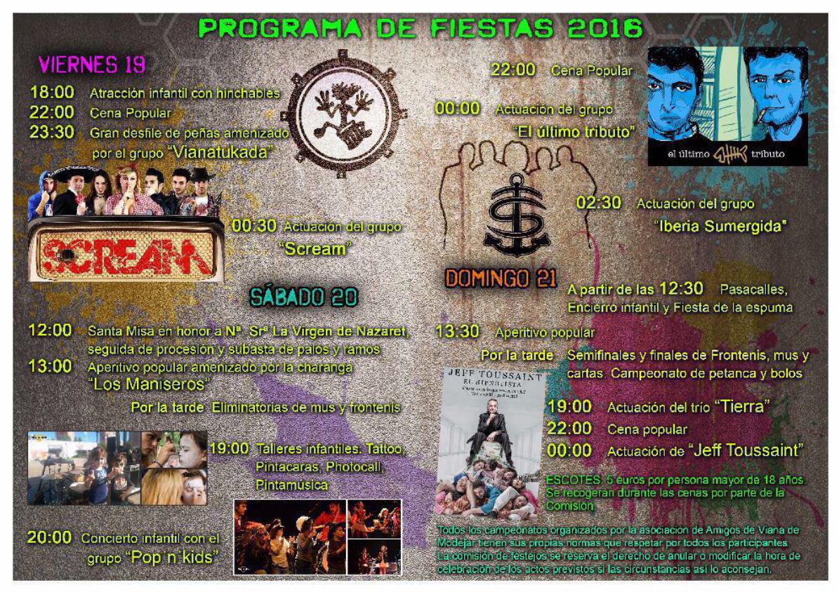 Asimismo, a los conciertos señalados se sumarán las orquestas y verbenas que amenizarán las jornadas festivas, entre las que cabe resaltar la actuación de la orquesta Corleone, el viernes a la 1:30 horas en Azañón, y la del grupo Iberia Sumergida, el sábado a las 2:30 horas en Viana.