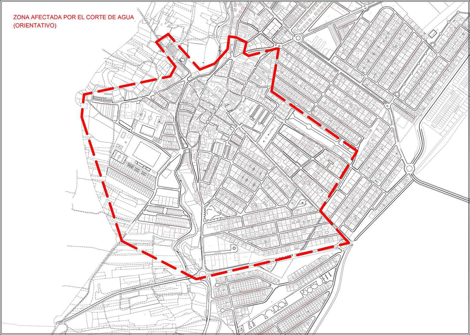 El corte afectará a una extensa parte del centro urbano del municipio, aunque posiblemente en distinto grado (unas calles de modo total, y otras quizá solo parcialmente).