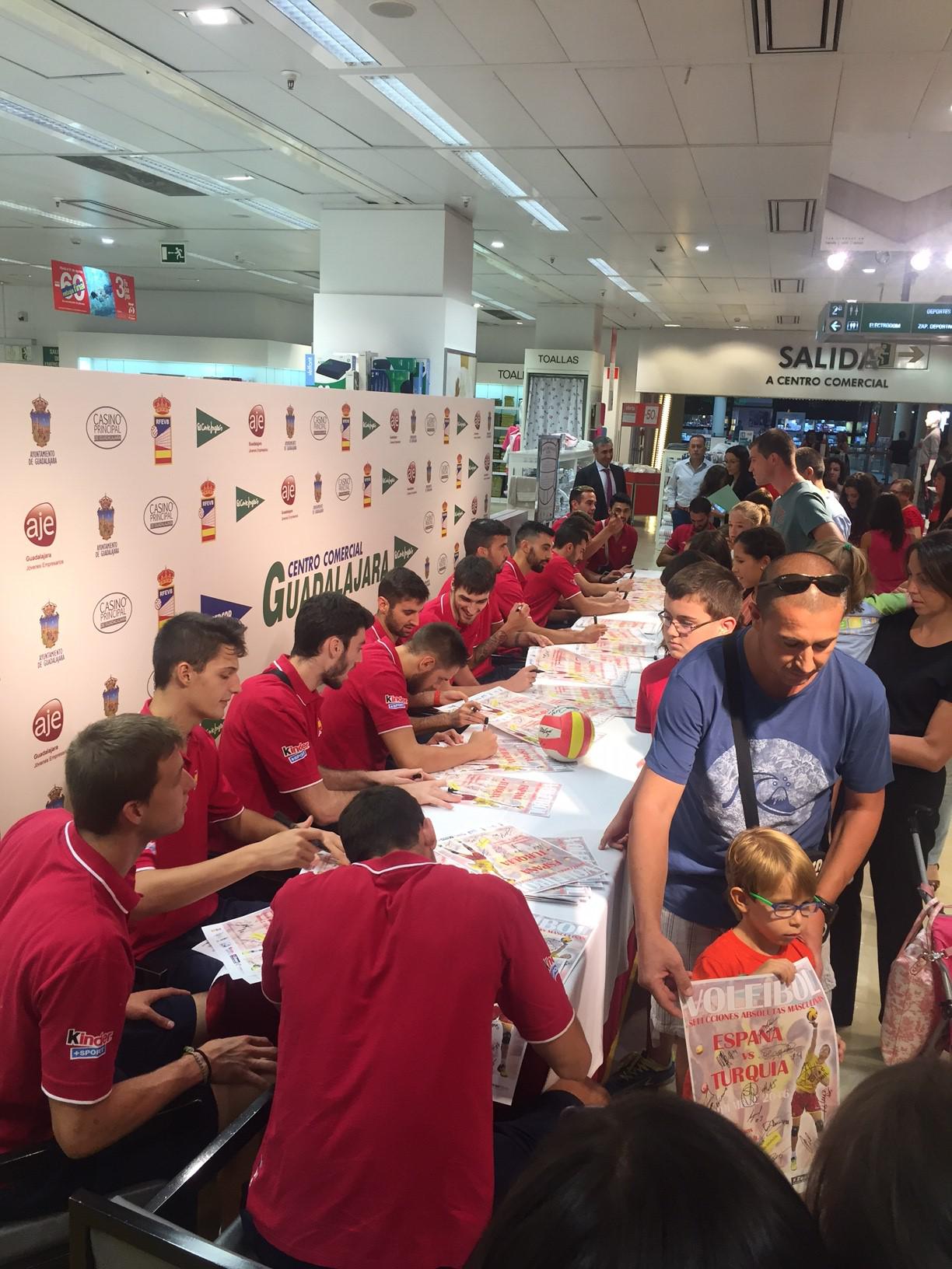 El acto ha comenzado con una muy participativa firma de autógrafos a cargo de una decena de jugadores de la Selección llegados para la ocasión, que han estampado sus autógrafos en pósters y fotos dedicadas a los aficionados. Tras este acto de recepción tenía lugar la conferencia impartida por el seleccionador nacional de voley, Fernando Muñoz, quien disertó sobre "El trabajo en equipo". El acto estaba presidido por la presidenta de AJE Guadalajara, Rocio Llorente, a quien acompañaron Carlos García e Ildefonso Rodrigo en representación del Casino Principal, así como Juan Pedro Bonilla, director de El Corte Inglés.