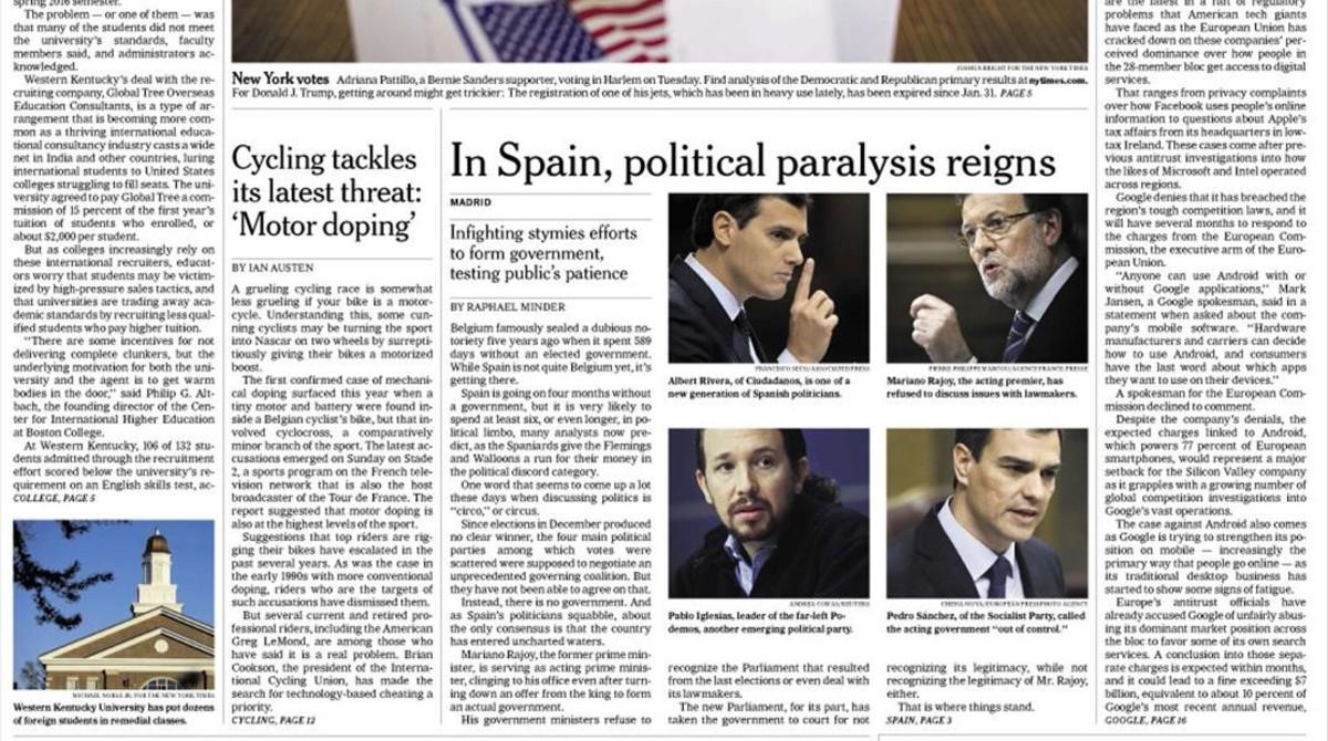 «El bloqueo político en España fue creado por votantes que demandan un mejor y más honesto gobierno», apunta el diario.