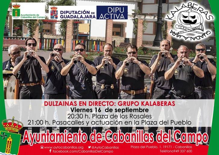 El próximo viernes 16 de septiembre se celebrará finalmente una actuación musical del grupo de dulzaineros “Kalaberas” en Cabanillas del Campo. Este concierto de folklore debió haberse llevado a cabo el pasado 26 de agosto, pero tuvo que suspenderse, y quedó aplazada.