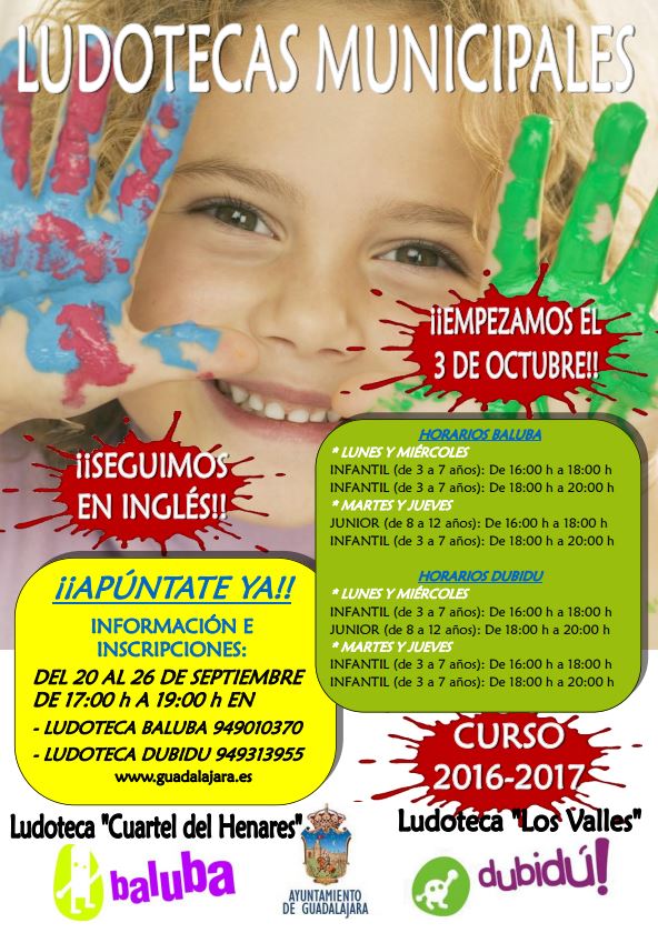 Para más información, los interesados pueden llamar, del 20 al 26 de septiembre, de 17 a 19 horas, a los teléfonos 949 010 370 (Ludoteca Baluba) y 949 313 955 (Ludoteca Dubidú).