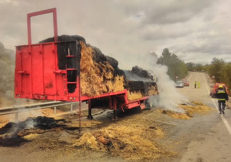 La carretera N-204 a la altura del kilómetro 23 y hasta el kilómetro 33, en el término municipal de Durón (Guadalajara), permanece cortada en sendos sentidos por el incendio de un remolque cargado con 17.000 kilos de paja.