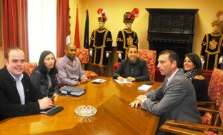 La Concejal de Empleo y Promoción Económica, Encarnación Jiménez, y el Concejal de Juventud, Armengol Engonga, han mantenido un encuentro con varios miembros de la junta directiva de la Asociación de Jóvenes Empresarios de Guadalajara. En el transcurso de esta reunión se han abordado diversos temas que afectan al mundo empresarial y juvenil centrándose, sobre todo, en las políticas que deben dinamizar el empleo a través de los jóvenes emprendedores. Por parte de AJE han asistido a esta reunión Abel Rivas, Elena Sánchez, Alfredo Sanz y Beatriz Heredia. Tanto los dos Concejales como los directivos de AJE han coincidido en la necesidad de fomentar el espíritu emprendedor entre los jóvenes de Guadalajara y en establecer acciones que contribuyan a la creación de empleo y dinamicen la economía local. SIGUE