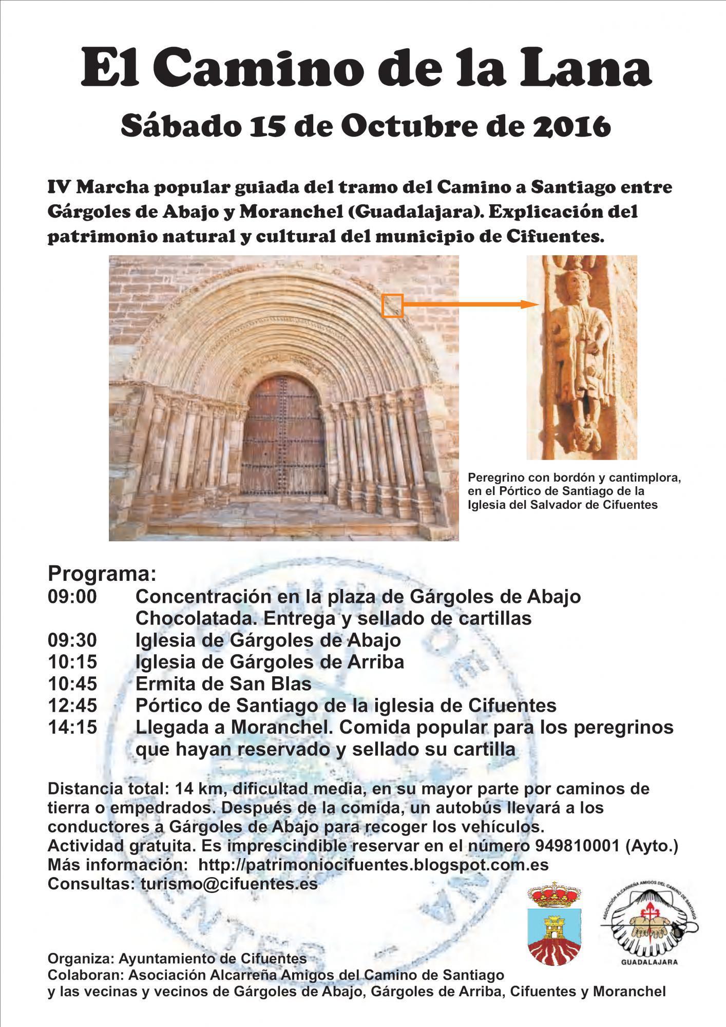 El Ayuntamiento de Cifuentes organiza este próximo sábado 15 de octubre un recorrido popular por el Camino de la Lana a su paso por el municipio. Se trata del ramal del Camino a Santiago que viene desde Valencia y Alicante y que, pasando por Cuenca, atraviesa la provincia de Guadalajara en dirección a Burgos, donde se une al conocido como Camino Francés.