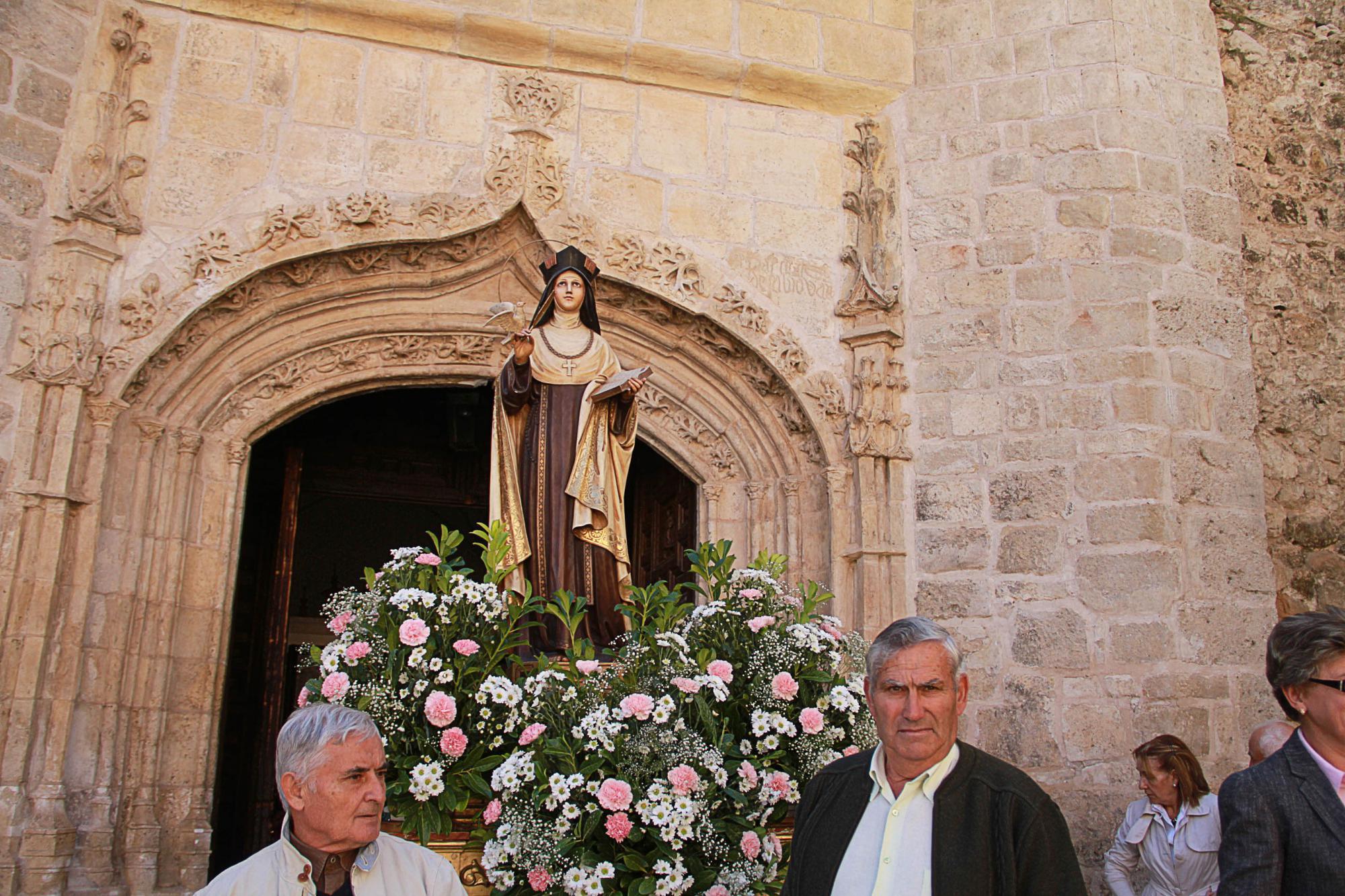 Al filo de las doce y media de la mañana, la imagen de Teresa de Cepeda salía, empujada por los fieles pastraneros, en solemne procesión por las calles de la villa ducal, precedida en este caso por las notas de la Banda de Música de Pastrana. (VER VIDEO) La talla, bellamente ornamentada de flores, salió por la Calle Mayor, para llegar a la Plaza de la Hora, circunvalarla, y regresar, por la calle de la Castellana y Plaza de los Cuatro Caños, de nuevo a la Colegiata. (VER VIDEO) A su llegada, la Coral de la Paz terminó la ceremonia religiosa interpretando el himno oficial a Santa Teresa, que se compuso con motivo del IV Centenario de su muerte en 1982, con letra de José Luis Martín Descalzo y música de Cristobal Halffter (VER VIDEO) El alcalde de Pastrana, Ignacio Ranera, encabezó la representación municipal en la ceremonia, acompañado por el senador Juan Pablo Sánchez Seco, entre otras personalidades.