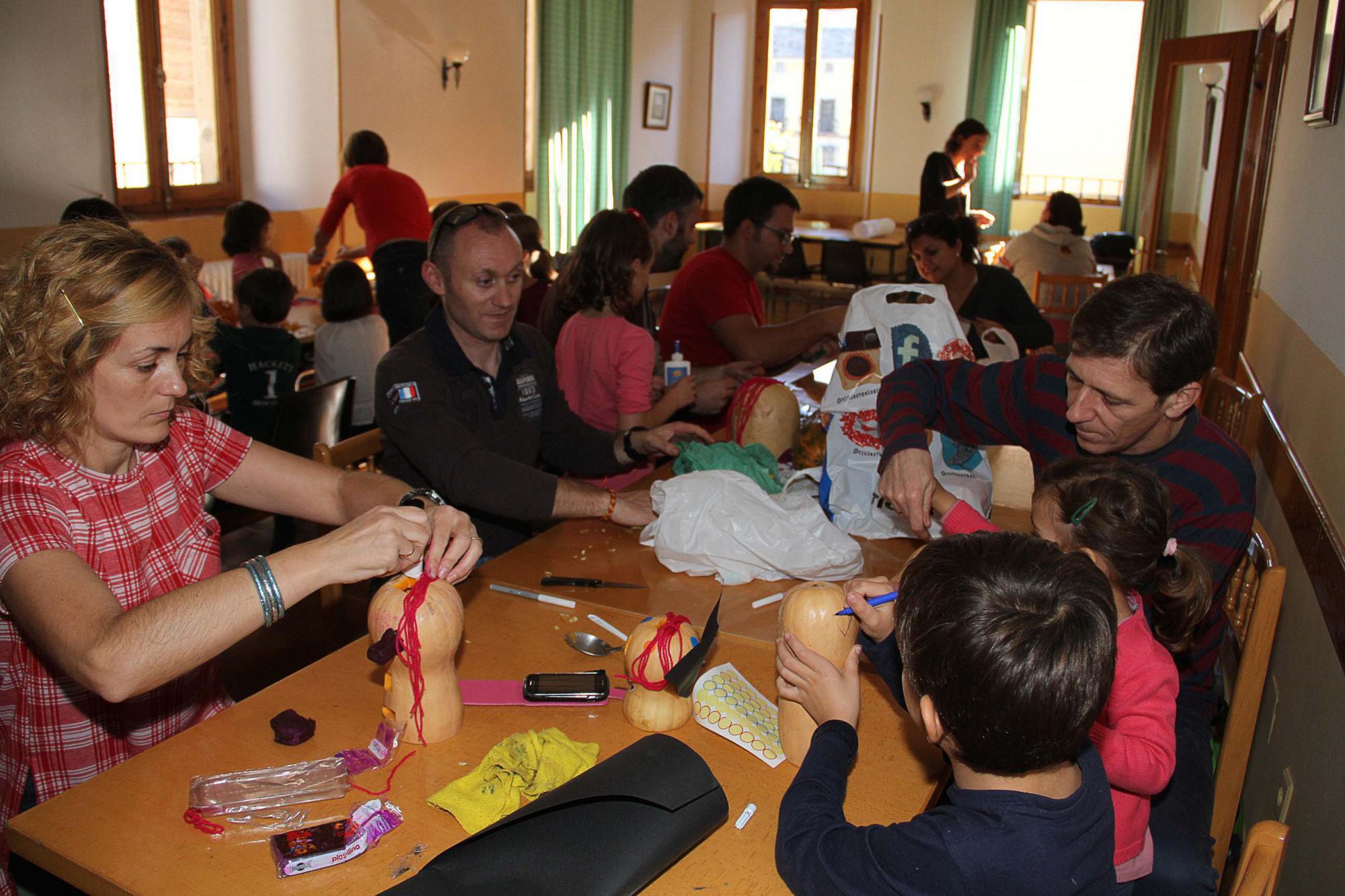 El Centro Social de Pareja se llenaba de vida ayer, en torno a las tradiciones del Día de Los Santos. En su primera planta, a partir de las 16:30 horas, cerca de treinta parejanos de todas las edades ocupaban las mesas del local para fabricar la bonita tradición de vaciar las calabazas y elaborar con ellas diseños “fantasmagóricos” con los que llenar de “terror” las calles del pueblo, una vez llegara la noche.