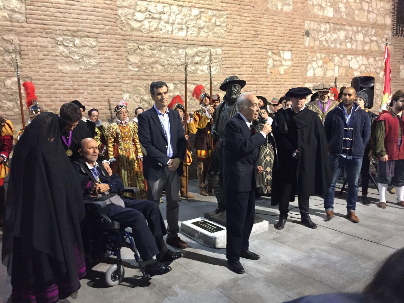 Hace unos minutos el alcalde, Antonio Román, y José González Vegas, en representación de Gentes de Guadalajara, han descubierto la escultura con la que queremos rendir homenaje al Tenorio Mendocino.