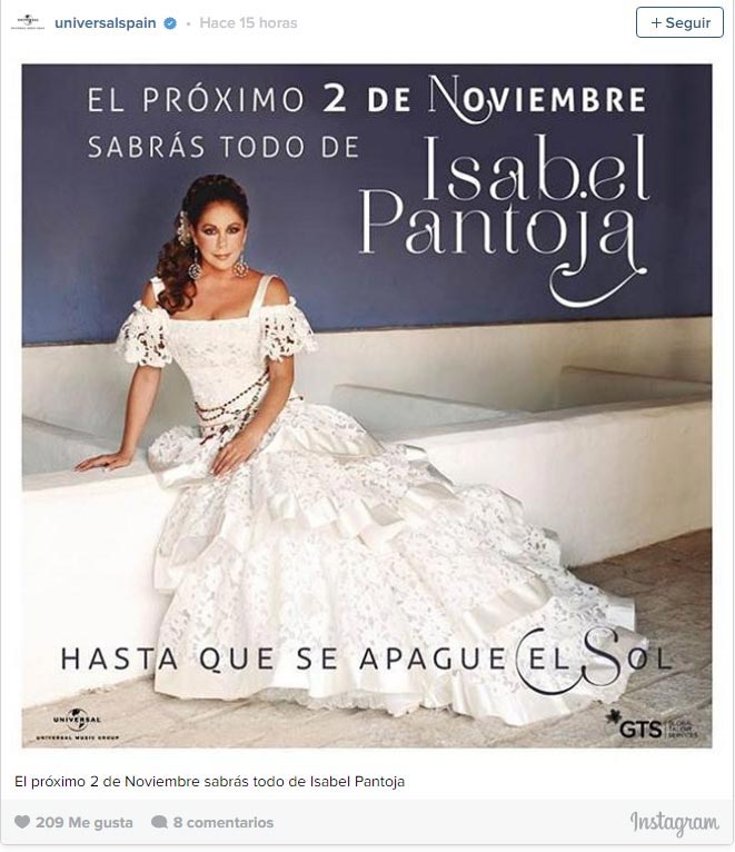 Elesperadísimo regreso a los escenarios de Isabel Pantoja ya tiene fecha. La artista publicará el próximo 11 de noviembre su nuevo disco que lleva por título Hasta que se acabe el sol, un trabajo que verá la luz en formato CD, vinilo y digital. Tal y como ha detallado la discográfica Universal Music, se trata de un álbum “escrito, compuesto y producido por Juan Gabriel en el que encontraremos temas del propio artista mexicano interpretados por primera vez por Isabel Pantoja con una exquisita Orquesta Sinfónica que nos transporta al mundo que ambos compartían artísticamente”.