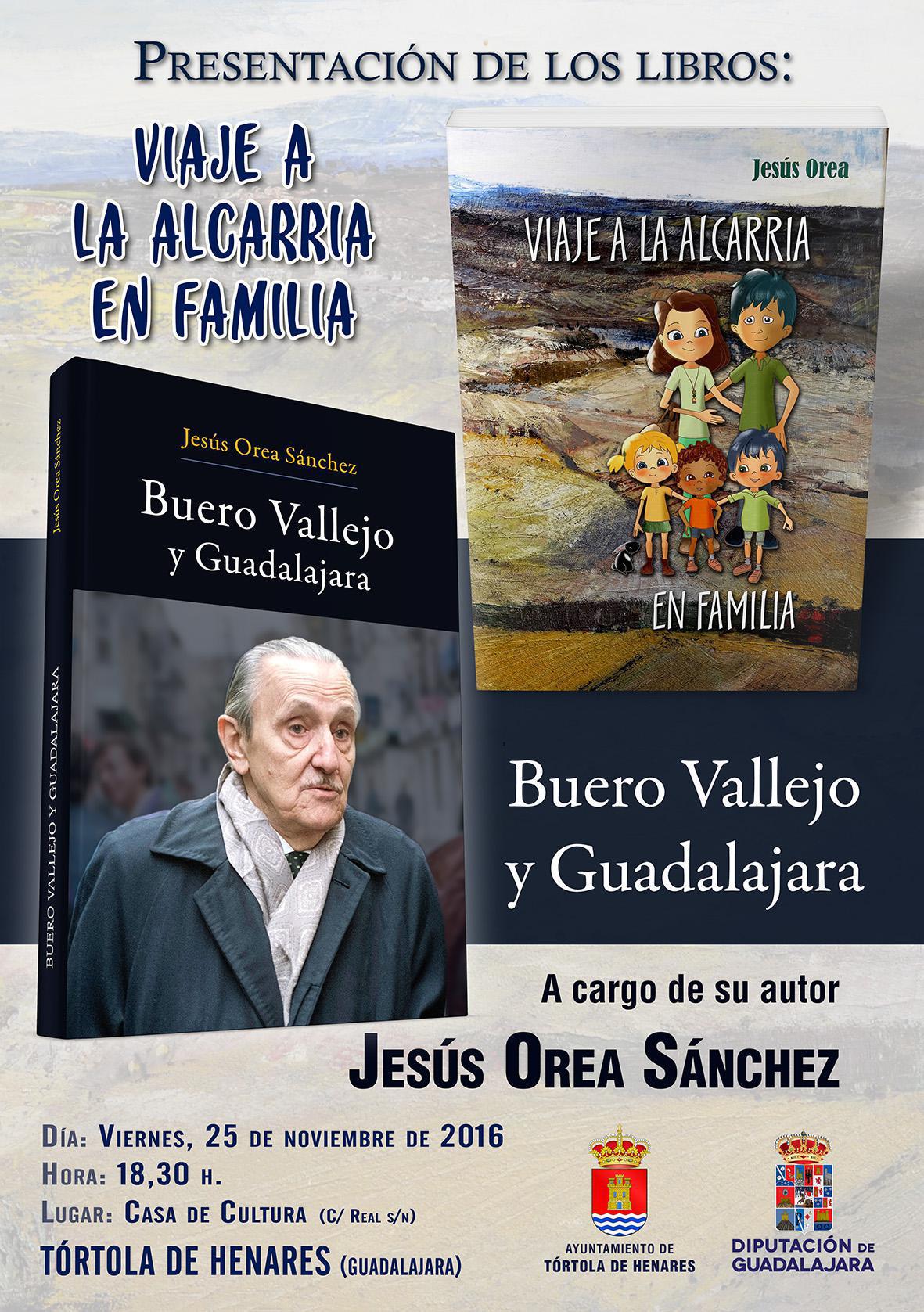 El próximo viernes, 25 de noviembre, a partir de las 18:30 horas en la Casa de la Cultura de Tórtola de Henares se presentarán en esta localidad los libros de Jesús Orea "Buero Vallejo y Guadalajara" y "Viaje a la Alcarria en familia" en un acto organizado por su Ayuntamiento con la colaboración de la Diputación Provincial.