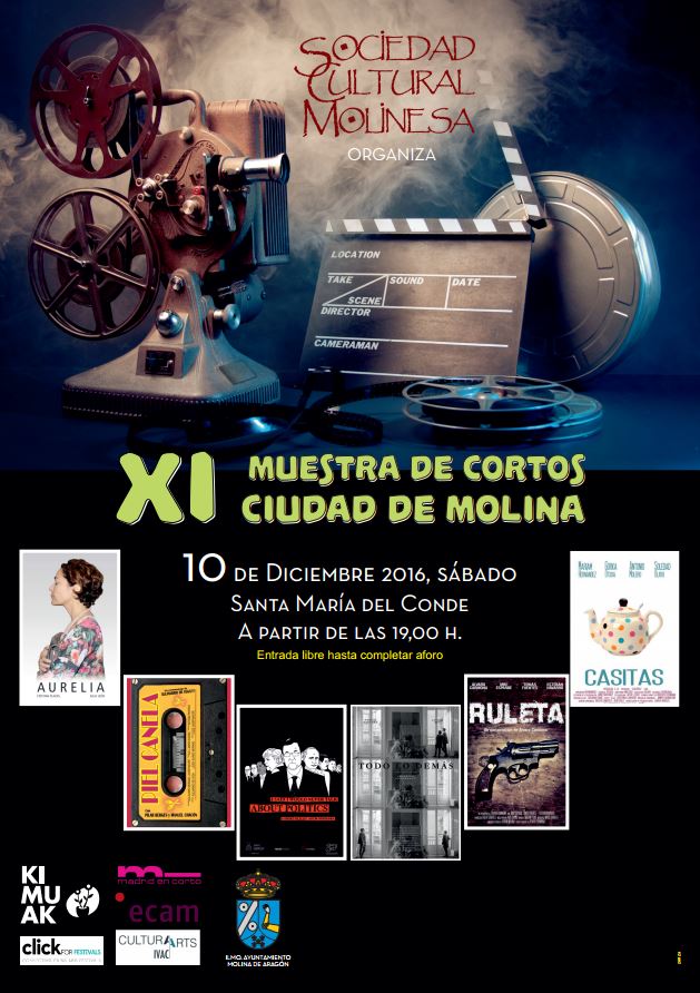 La Sociedad Cultural Molinesa organiza en Molina de Aragón la XI Muestra de Cortos “Ciudad de Molina”, que se celebrará en Sta. María del Conde a las 19:00 h el próximo 10 de Diciembre de 2016.