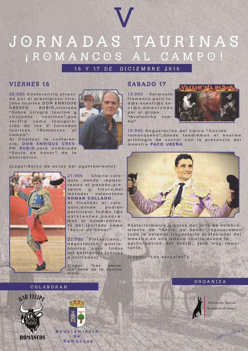 Los días 16 y 17 de diciembre, la asociación taurina "Romancos al campo" de Romancos, Guadalajara, celebrarán sus V Jornadas Taurinas.