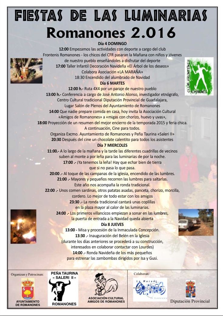 La conferencia forma parte del programa "Fiestas de las luminarias de Romanones 2016" organizado por el Ayuntamiento de la localidad con colaboración, entre otros de Diputación de Guadalajara.