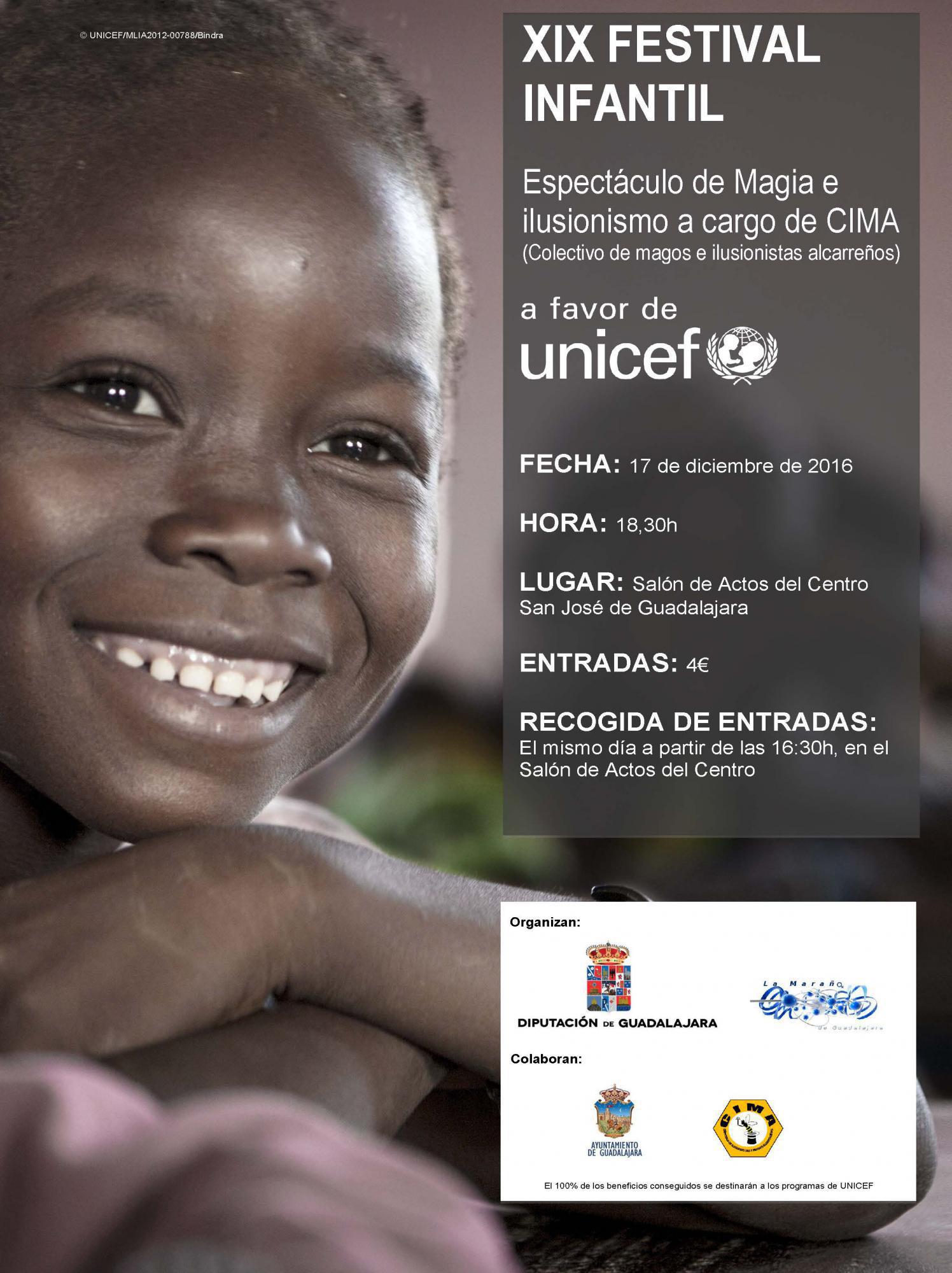 El próximo sábado 17 de diciembre, el Salón de Actos del Centro San José de Guadalajara acoge el XIX Festival Infantil a favor de UNICEF, organizado por la Diputación Provincial de Guadalajara, en colaboración con la Asociación La Maraña y el Ayuntamiento de Guadalajara.