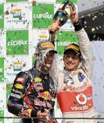 El piloto australiano de Red Bull, Mark Webber, ha conseguido la victoria en el Gran Premio de Brasil, última prueba puntuable del campeonato del mundo, por delante de su compañero de equipo, el alemán Sebastian Vettel, y del británico Jenson Button (McLaren), mientras que el español Fernando Alonso (Ferrari) terminó cuarto. Webber supo aprovechar los problemas mecánicos de Vettel para hacerse con su primera victoria del año, aunque no le sirvió para proclamarse subcampeón del mundo, ya que Button terminó tercero. Todo parecía indicar que en Brasil se vería una nueva victoria de Vettel, pero el panorama cambió conforme pasaban las vueltas. El alemán empezó la carrera con un ritmo muy fuerte, como suele ser habitual, y se marchó en solitario tras una gran salida. Sin embargo, no contaba con que su monoplaza no marchaba tan bien como él pensaba y en la vuelta 26 su equipo le anunciaba de que su caja de cambios tenía problemas. SIGUE