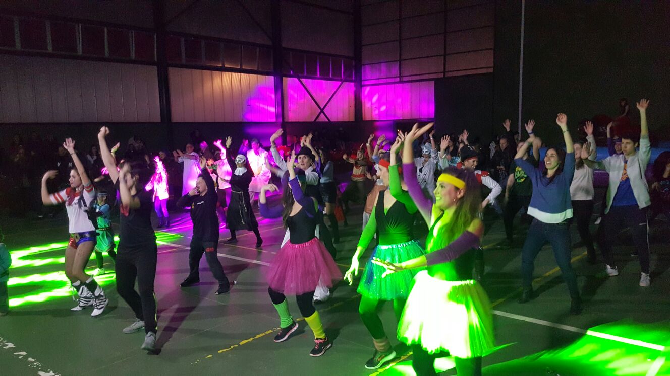 Además de estos dos eventos del domingo, el Carnaval de Cabanillas contó en la tarde-noche del sábado con dos citas musicales que tuvieron gran acogida de público. Por la tarde, desde las 20:00 horas, se celebró una sesión de baile dirigido. Buena entrada en el Frontón Municipal para disfrutar de esta cita, con un público muy participativo, que siguió las coreografías que, con ritmos latinos, de funky o zumba, iban proponiendo los monitores del Polideportivo Municipal, de la Asociación Punta Tacón o del Grupo de Zumba de la Escuela Municipal de Música. Algunos no se atrevían a bailar y se quedaban de "mirones", y los más osados, en el otro extremo, se animaban a subirse al toro mecánico instalado también para la ocasión.