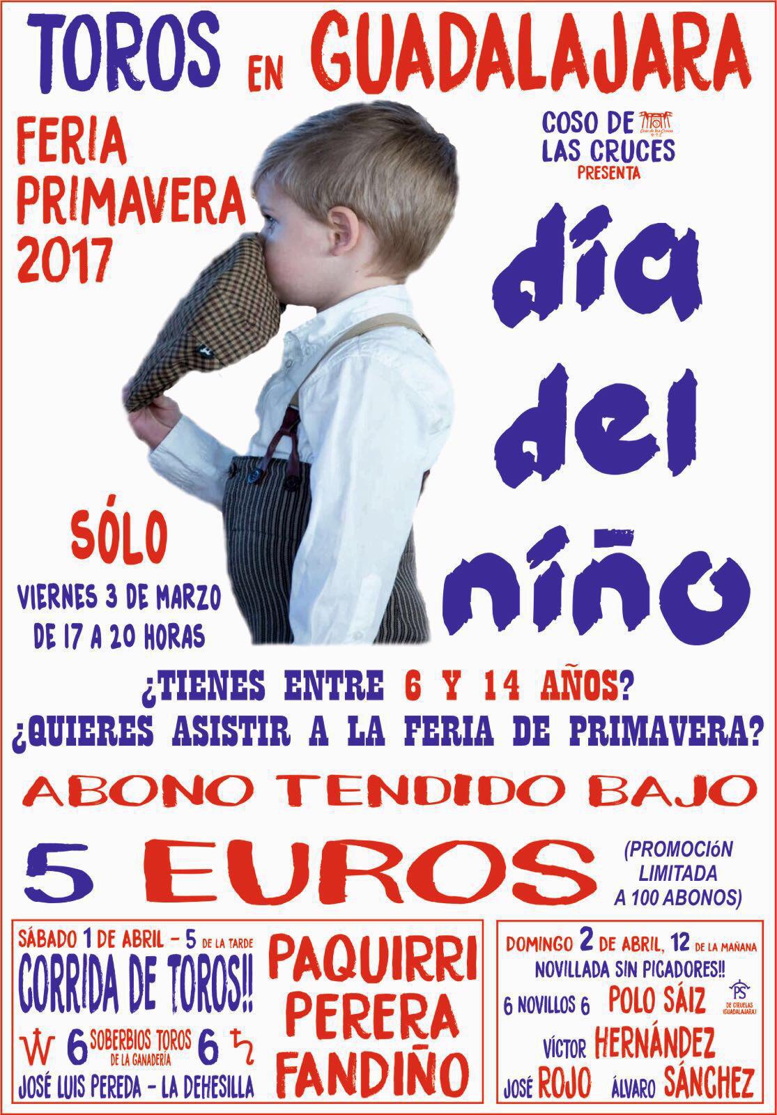 La empresa UTE Coso de Las Cruces, encargada de la gestión de la Feria de Primavera de la Plaza de Toros de Guadalajara, ha puesto en marcha un abono para niños (entre 6 y 14 años) para la próxima Feria de Primavera del 1 y 2 de abril por tan sólo, ¡5 euros!