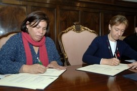 La presidenta de la Diputación, Ana Guarinos, ha firmado esta mañana un convenio de colaboración con la presidenta de la Coordinadora Provincial de ONGD´s de Guadalajara, Angélica Matías, para mejorar y aumentar la cooperación al desarrollo. Este convenio, que fue aprobado por acuerdo de la Junta de Gobierno de fecha veintiséis de octubre de 2011, tiene como objetivo la financiación de la ejecución del proyecto de sensibilización y educación al desarrollo dirigido a la población de la provincia de Guadalajara. Mediante este convenio, la Institución provincial realiza una aportación económica de 10.000 euros y la Coordinadora de ONG´s se responsabiliza de la programación y ejecución de las actividades.