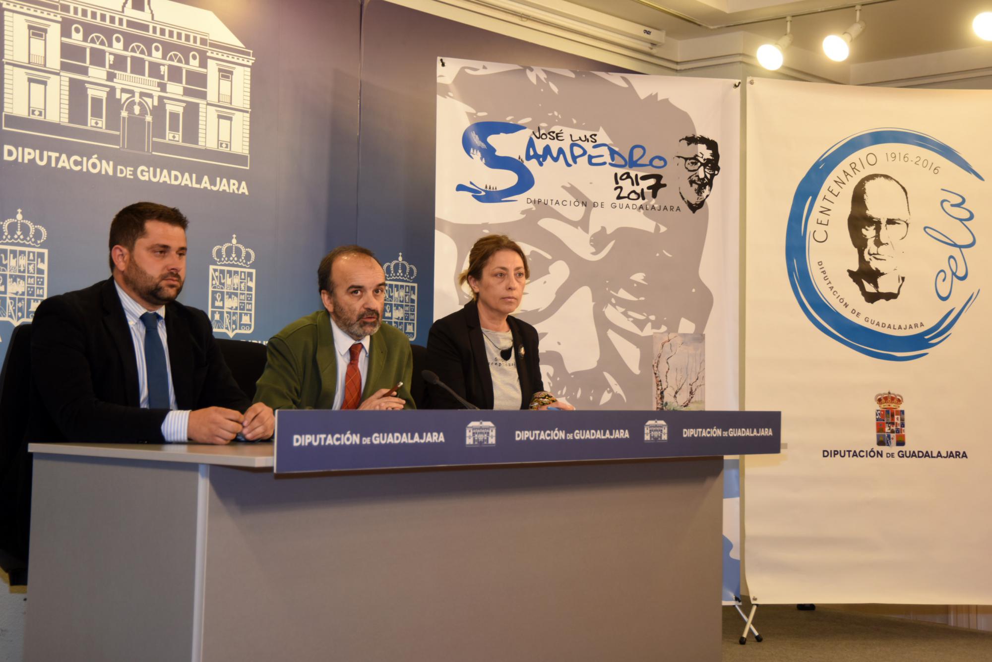 La Diputación Provincial de Guadalajara, a través del Servicio de Cultura y en colaboración con el Servicio de Turismo, ha puesto en marcha una atractiva iniciativa con la que pretende dar a conocer la provincia de Guadalajara a través de las obras ‘Viaje a La Alcarria’, de Camilo José Cela, y ‘El río que nos lleva’, de José Luis Sampedro, aprovechando la celebración de los centenarios de ambos escritores. Así lo ha dado a conocer hoy en rueda de prensa el vicepresidente segundo y diputado delegado de Cultura y Educación, Jesús Herranz, acompañado por el diputado de Turismo, Jesús Parra, y por Sara Domínguez, integrante de ‘Arte en marcha’, encargada de coordinar la actividad.