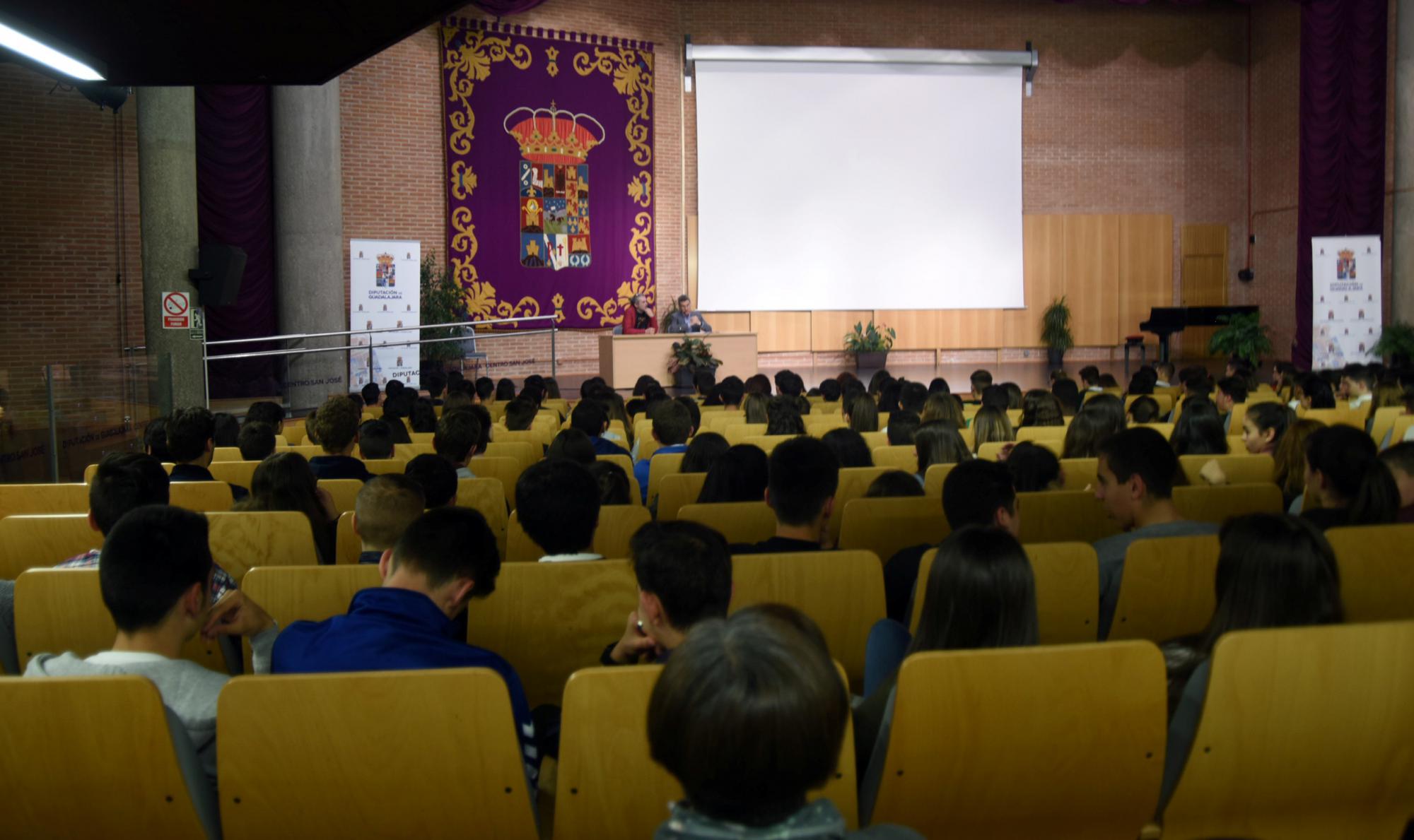 Las actividades han comenzado esta mañana con la celebración, en el salón de actos del centro San José, de una actividad educativa y cultural, dirigida a estudiantes de secundaria y bachillerato de la provincia que ha contado con la presencia del diputado de Juventud, Lucas Castillo, que con su presencia ha apoyado la realización de esta cuidada programación. En ella han tomado parte 250 alumnos de los IES “Alejo Vera”, de Marchamalo; IES “Buero Vallejo”, de Guadalajara; y el Colegio Diocesano “Cardenal Cisneros”, también de Guadalajara. La sesión ha consistido en la proyección de la película documental “Cervantes. La Búsqueda” y una posterior charla-coloquio con su director, Javier Balaguer. En este documental se muestra el interesante trabajo de investigación, excavación y descubrimiento de los restos de Cervantes, que se realizó en 2015 en la antigua iglesia de las Trinitarias, de Madrid, a la vez que se da a conocer a Cervantes como hombre, no como mito, y se pone en valor su extraordinaria talla literaria. El documental se ha proyectado en un formato reducido de 52 minutos de duración, especialmente planteado para este tipo de sesiones con estudiantes.
