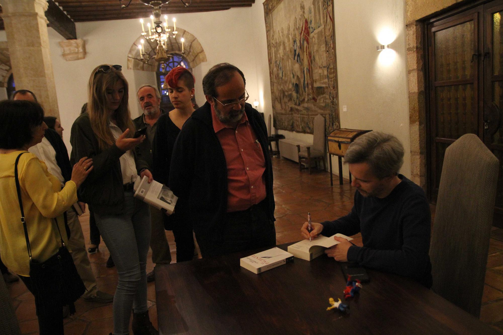 El director de comunicación de Paradores cerró la tertulia con una frase dedicada al autor, hilando en ella los títulos de sus libros. “Batman mola más que tú, que eres el séptimo príncipe, y aunque tengas un contrato con dios, hay que ser como el paciente, para que no se repita la historia secreta del señor White. Actuemos pues, como el espía de dios para evitarnos representar el emblema del traidor. Después de escucharte creo que la leyenda del ladrón no es nada comparada con la mascare de Virginia Tech, donde una cicatriz consiguió que Alex Colt se convirtiera en cadete espacial. VER FINAL DE LA TERTULIA.
